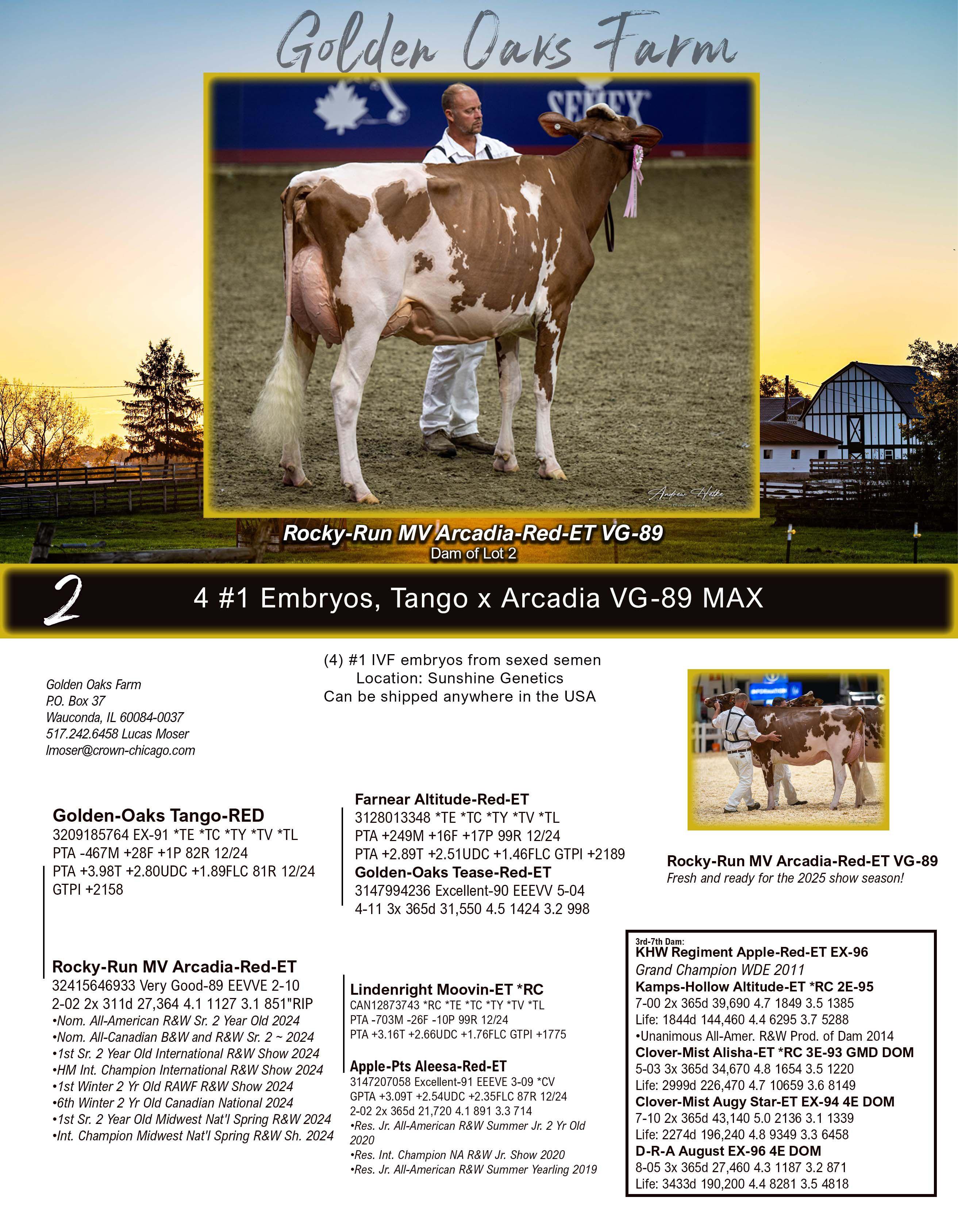Golden Oaks Embryo sale August 2025