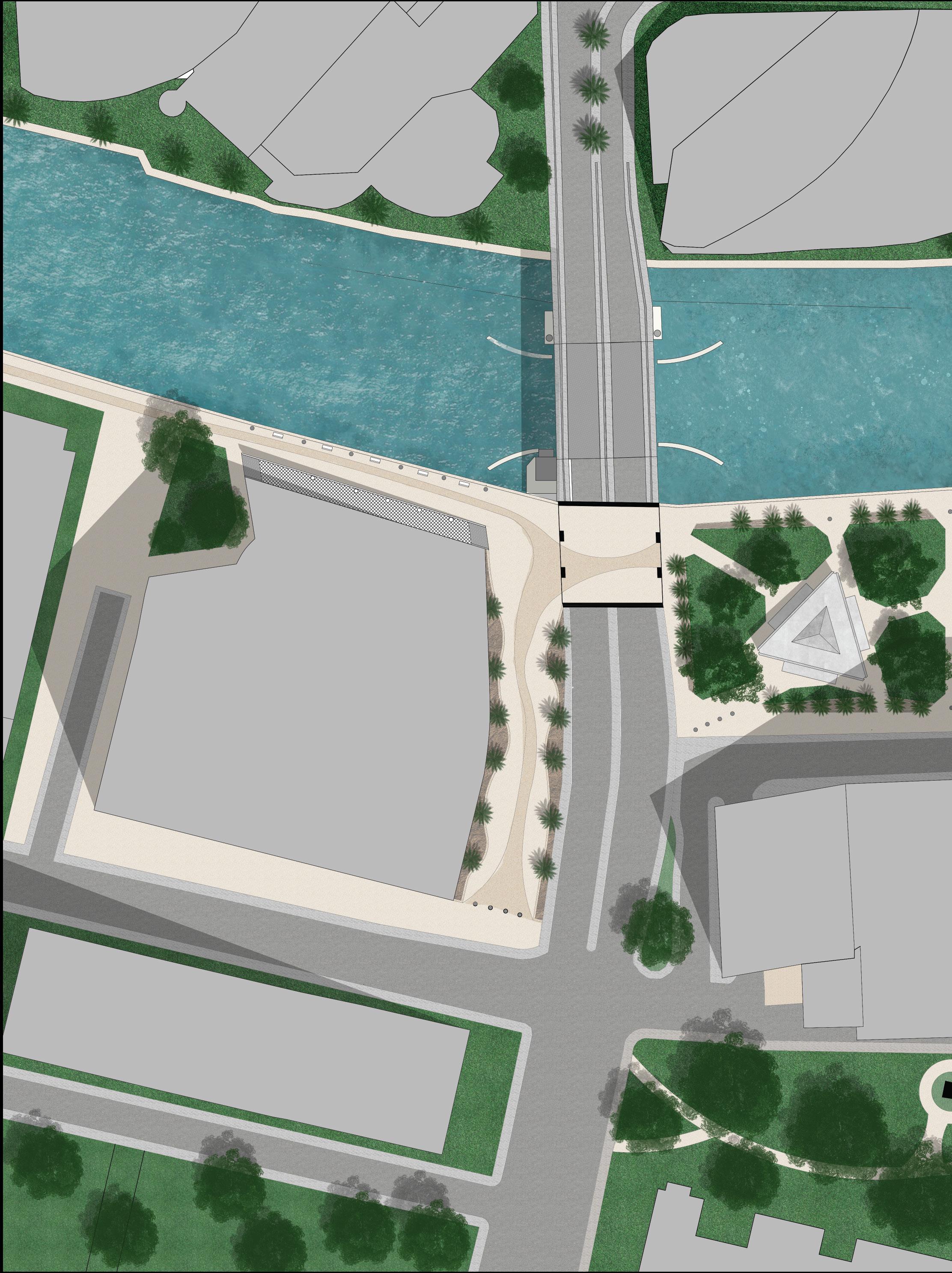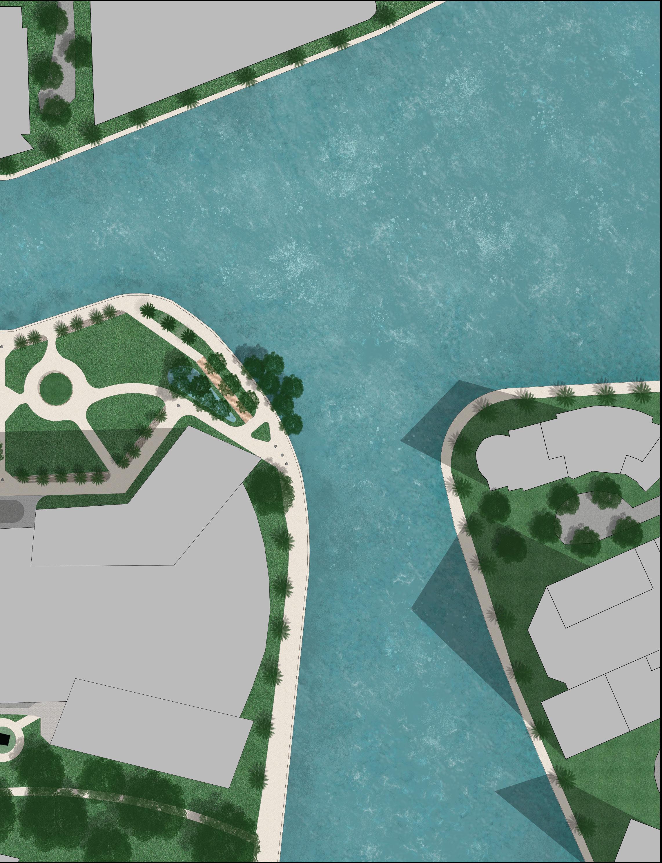 The goal of this project was to reimagine the Miami Circle Park in a way that preserves the Tequesta values and artifacts that have been found on the site. The park redesign features several new trees and paths to follow, which allow for a more comfortable environement for visitors, in addition, mangrove trees have been located at the far end of the park looking out to Biscayne Bay, creating a more traquil area of the park. A new building which is now a museum for the tequesta artifacts was placed on the site as a way fro visitors to enjoy the newly renovated park as well as learning about the native people.