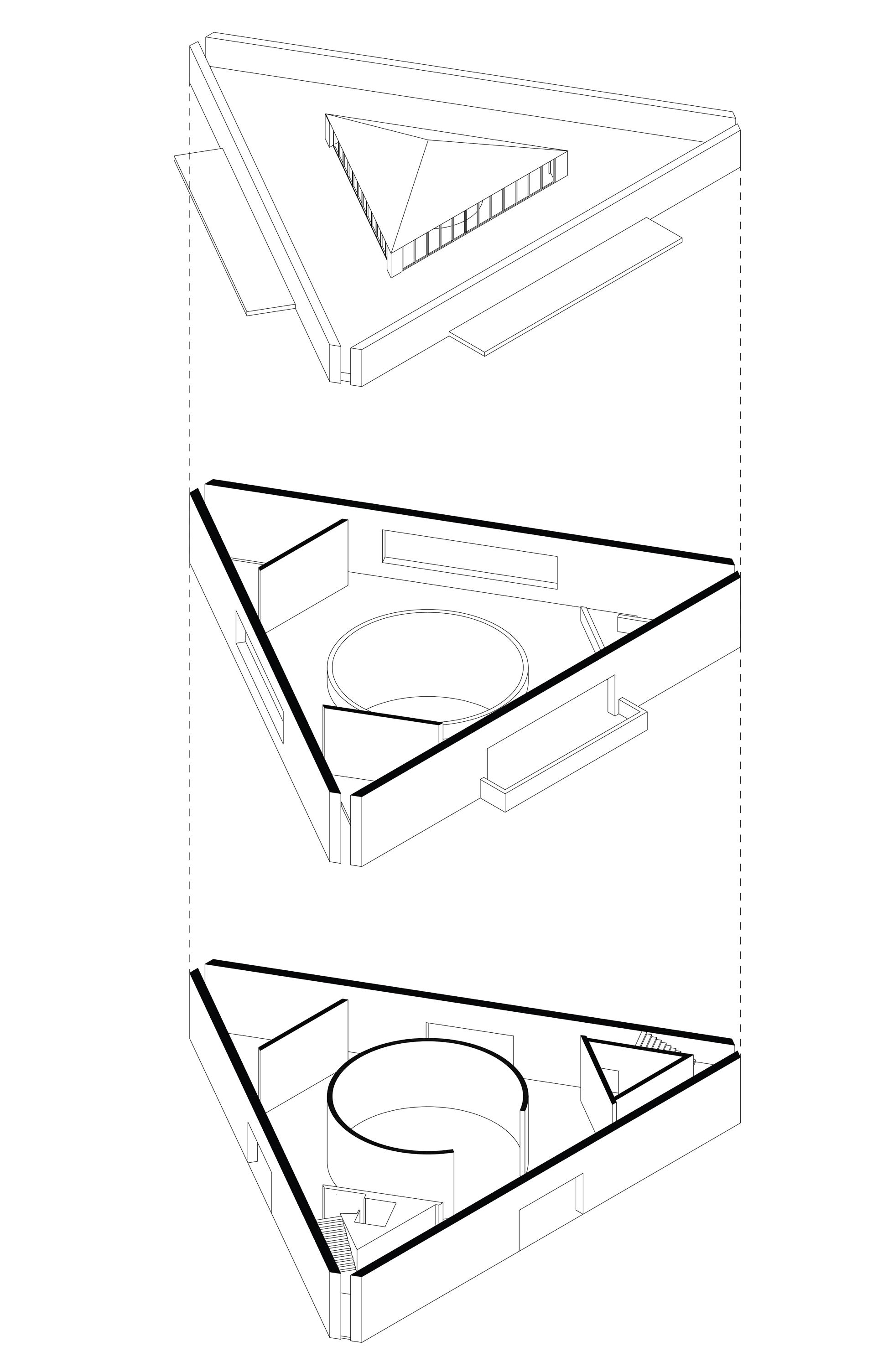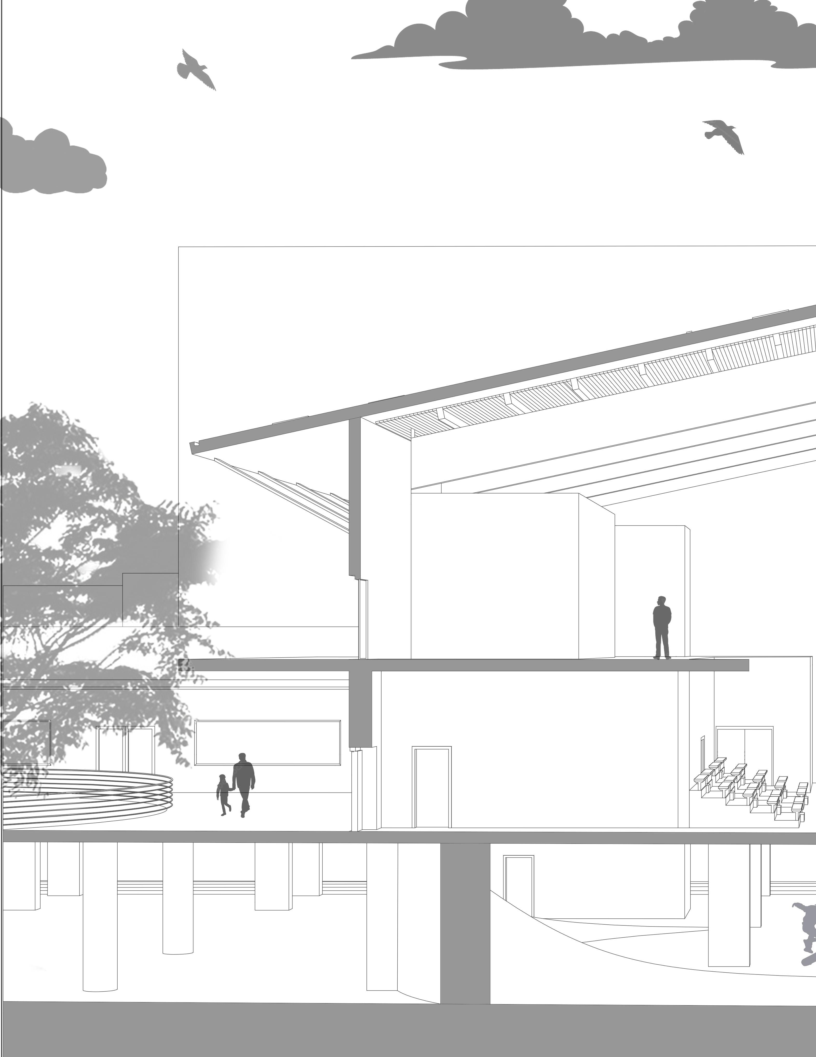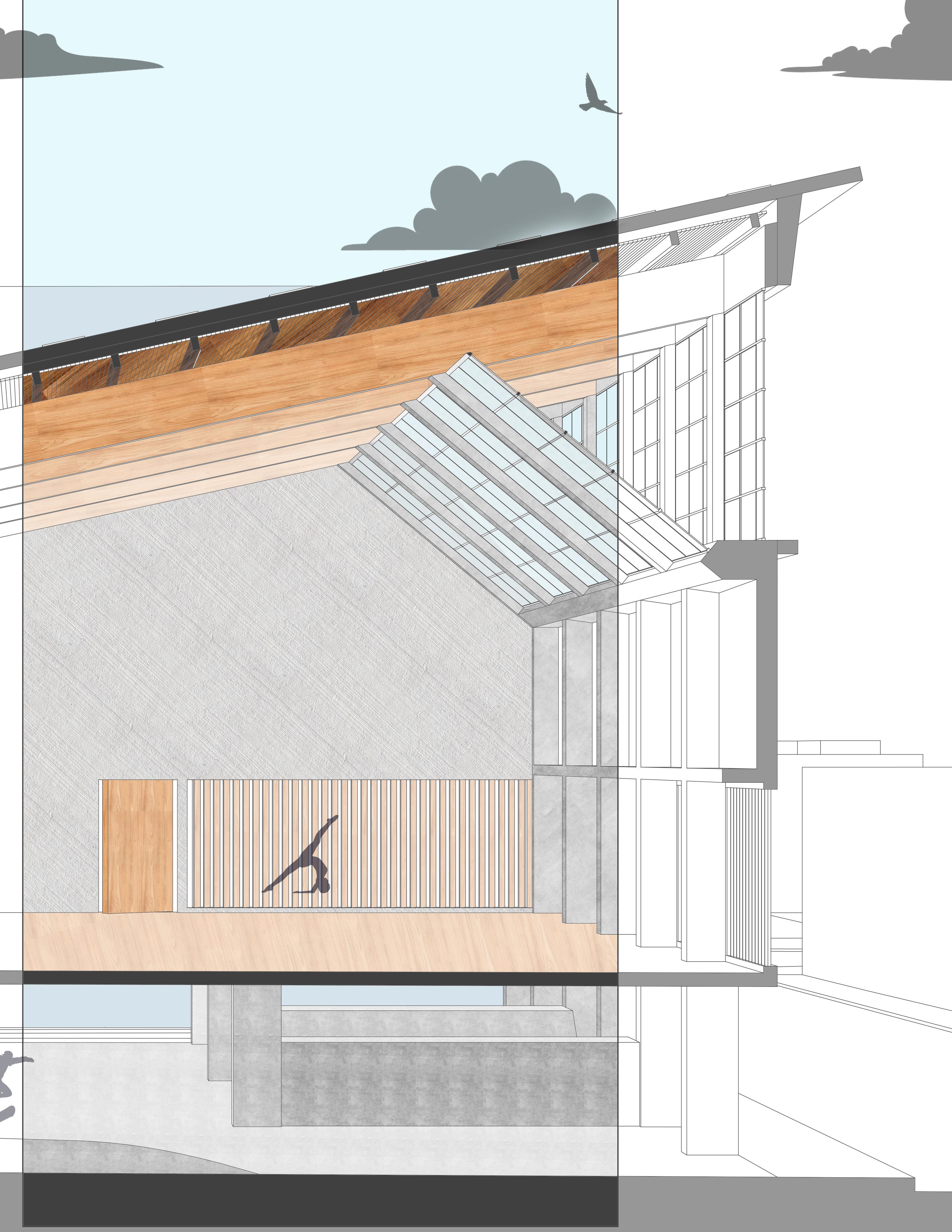 Taking influence from a shotgun house, commonly seen in Overtown, a portion of the roof is subtracted and then added to the family house strengthening the connection between the two. Although the two houses representing the different cultures are separated by the courtyard in the middle, they are connected by a bridge overlooking the courtyard, which was made to symbolize that no matter how different the cultures may seem there is always a connection to be found