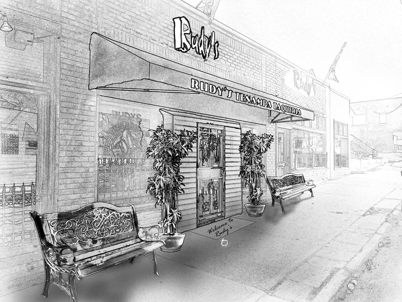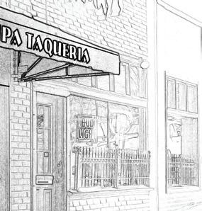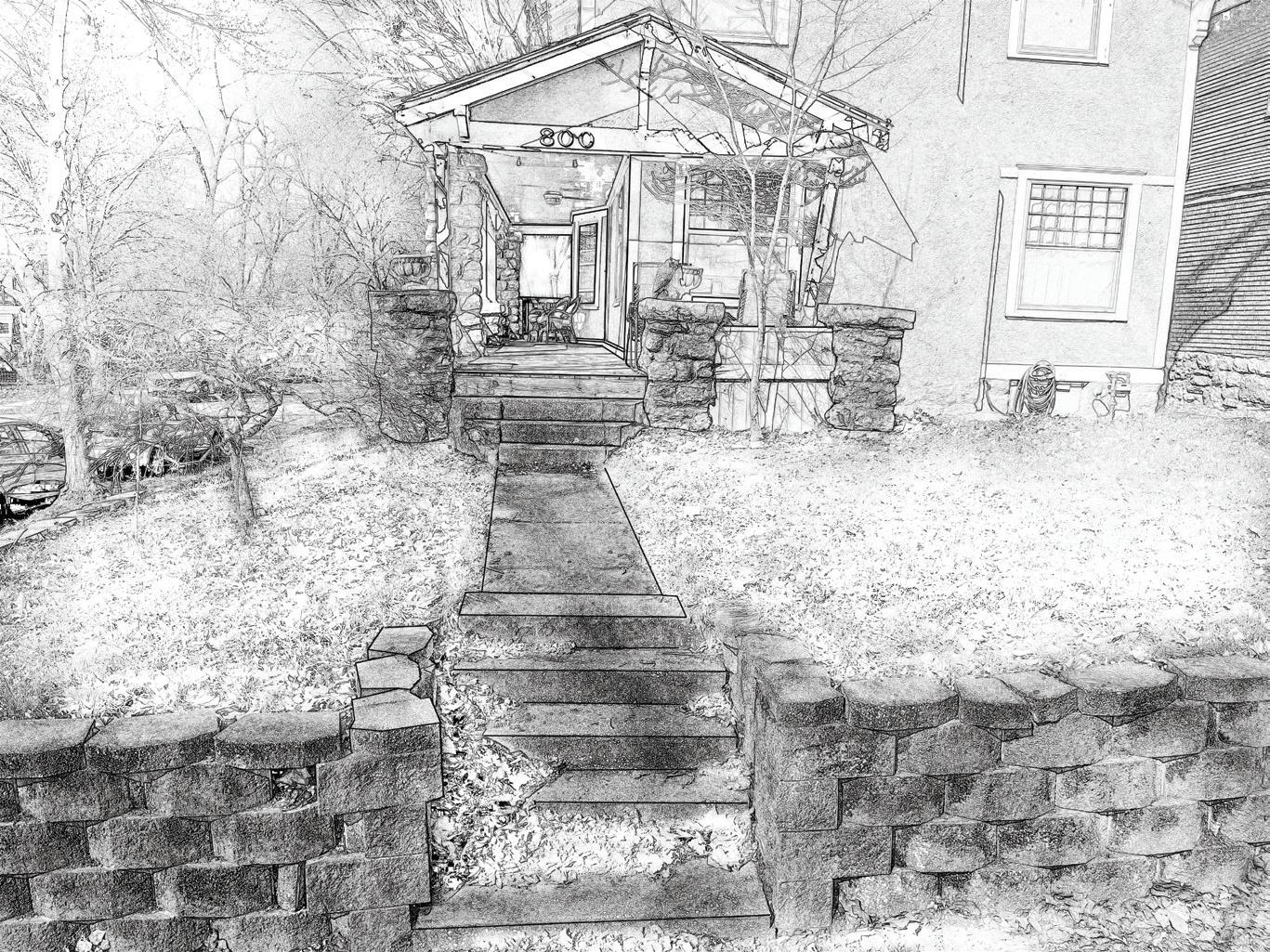 The entryway intervention was created through Photoshop. New design acknowledges the transitional qualities of strong public-private connections. Reflects the intervention in Elevation A.