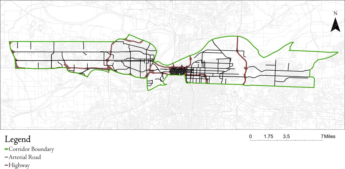 The goal of this collaborative project is to create an existing conditions analysis of a proposed Bi-State Corridor. Facilitated by the Mid-America Regional Council, the primary proposed investment is a zero-emissions transit system which will move commuters on an east-west route from Independence, MO, to Village West in Kansas City, Kansas.