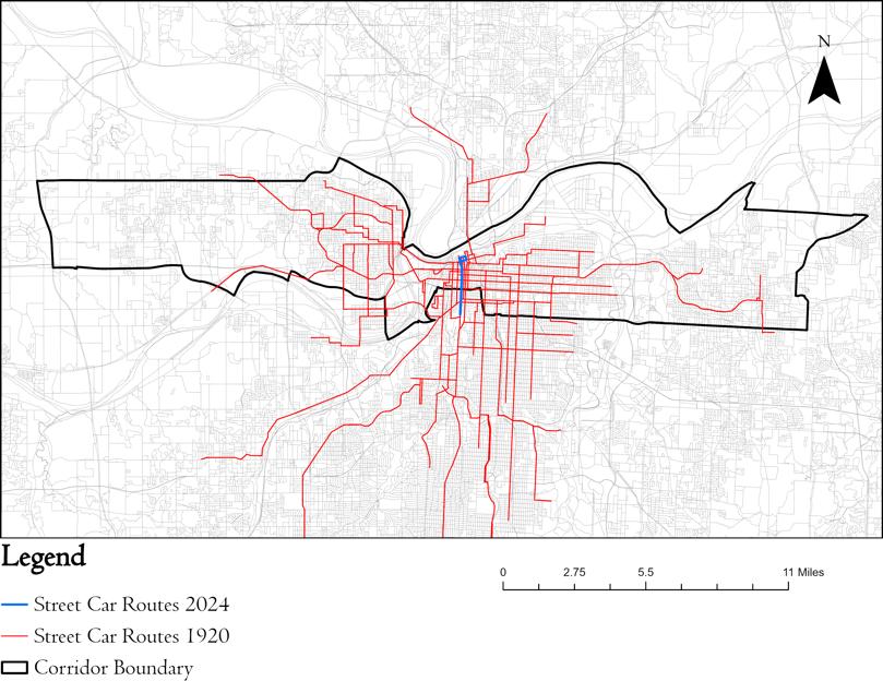 This map was made by georeferencing a historical Gallup map on ArcGIS Pro. Involved the creation of a new line feature class and manual tracing over historical routes in order to create a visually cleaner and spatially accurate map of the historic streetcar route.