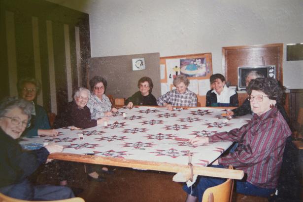 Members of Adele’s quilting group working on a quilt. At its peak, the business made 10 to 12 quilts a year to clients around the world.