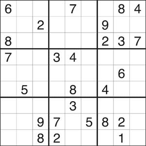 The object of the puzzle is to fill the remaining squares, using all the numbers 1–9 exactly once in each row, column, and the nine 3 × 3 subgrids