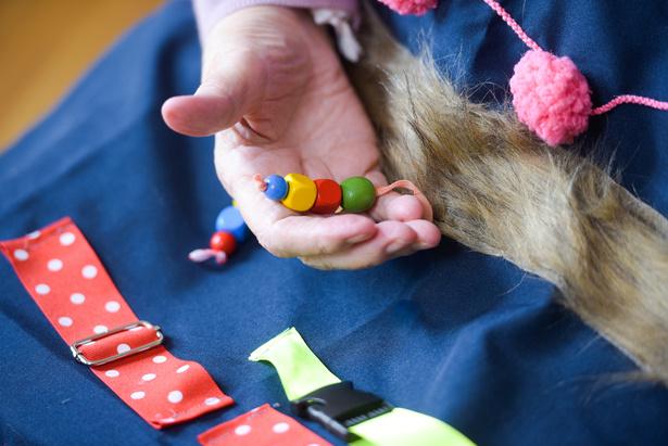 The project involved sewing various sensory items to aprons, which can be safely worn by long-term care residents