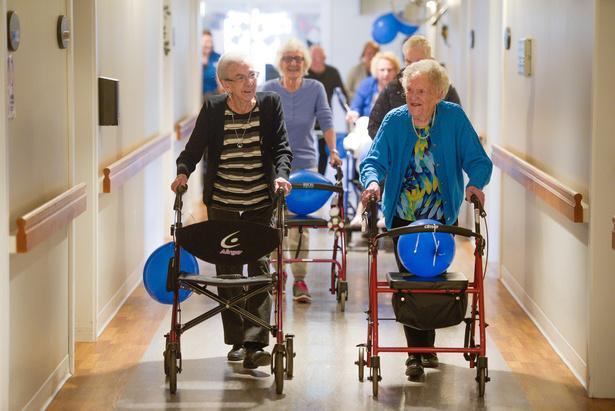 Andrews of Summerside residents Valerie Waite and Doris DeWolfe lead the pack through the halls.