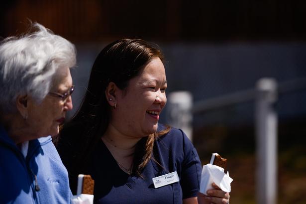 Andrews of Parkhill team member Emme Koebrich smiles while enjoying an ice cream sandwich during Parkhill's fundraiser walk.