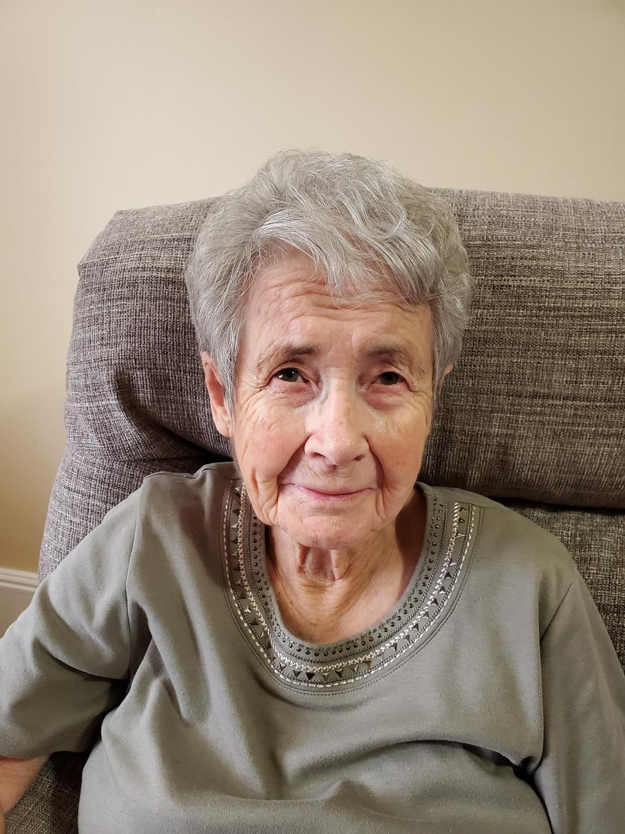 Andrews of Parkhill resident Dolly DesRoches smiles while watching others complete the walk around the property as part of Parkhill's in-house fundraiser for the Alzheimer's Society.