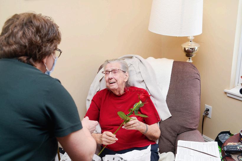 Andrews residents were treated to Valentine’s flowers, courtesy of Kent Building Supplies. Our photographer was at Andrews of Summerside to document the delivery.