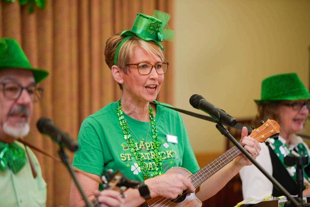 Residents at our homes showed off their Irish spirit during St. Patrick's Day festivities. We celebrated with traditional Irish meals like corned beef and Irish stew as well as parties featuring Irish music, green beer and Irish trivia!