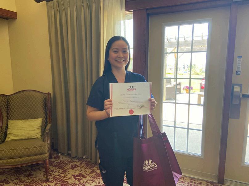 I also want to congratulate Cathy Perry on her recent retirement after 25 years with Andrews Cathy first joined Andrews of Summerside in January, 2000. Over the course of her career she worked as a caregiver and a program coordinator before settling into her most recent role in administration Cathy made a positive impact on the lives of our residents and her fellow team members throughout her career We wish her the best of luck in all her future endeavors.
