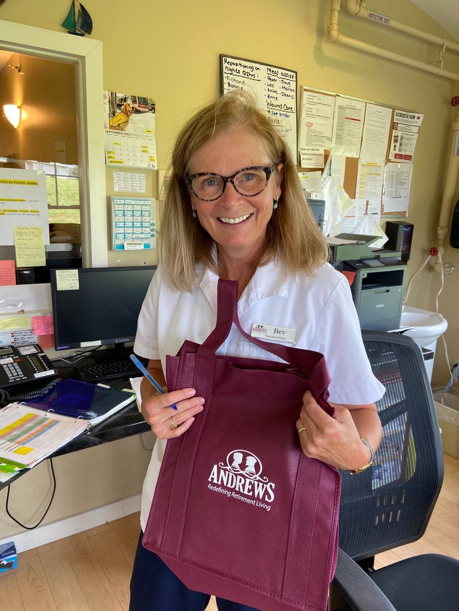 Our Above and Beyond winner for September is Bev Walsh, an RN in our Long-term care wing at Andrews of Stratford Bev always has a smile on her face, is excellent with our residents and is always willing to help out her team members She never hesitates to take extra shifts or work extra hours We are fortunate to have her on our team