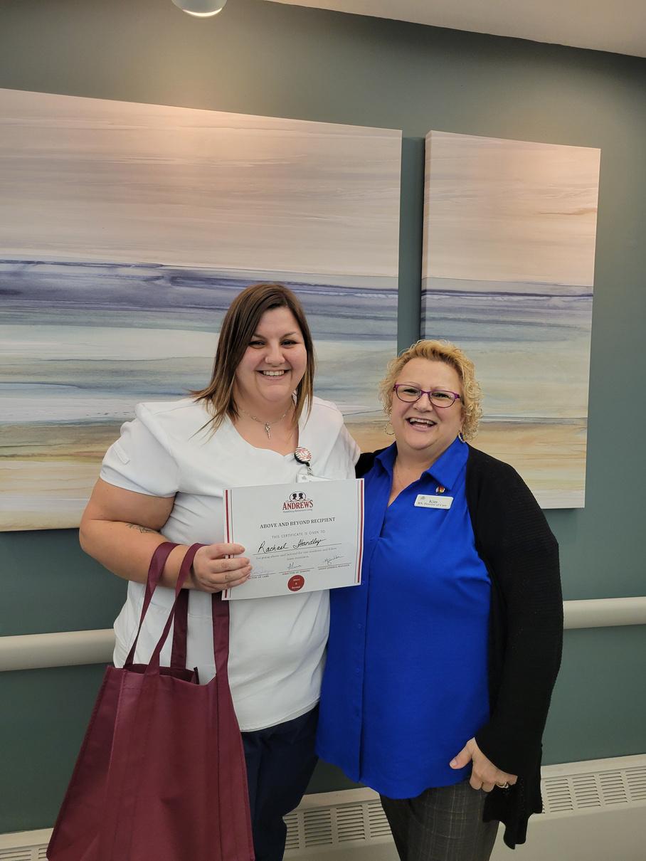Rachael was recognized for going above and beyond Also pictured is Director of Care Kim Jay