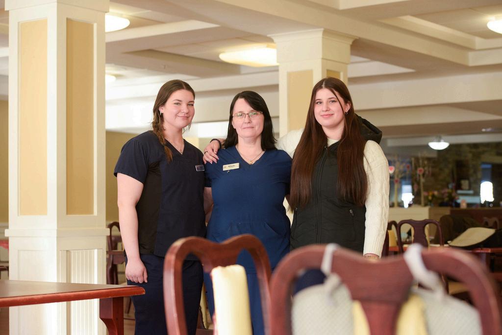 The trio work in the kitchen together at Andrews of Charlottetown. Mindy is the home’s sous-chef, Paige is a cook and server and Olivia is a dishwasher.