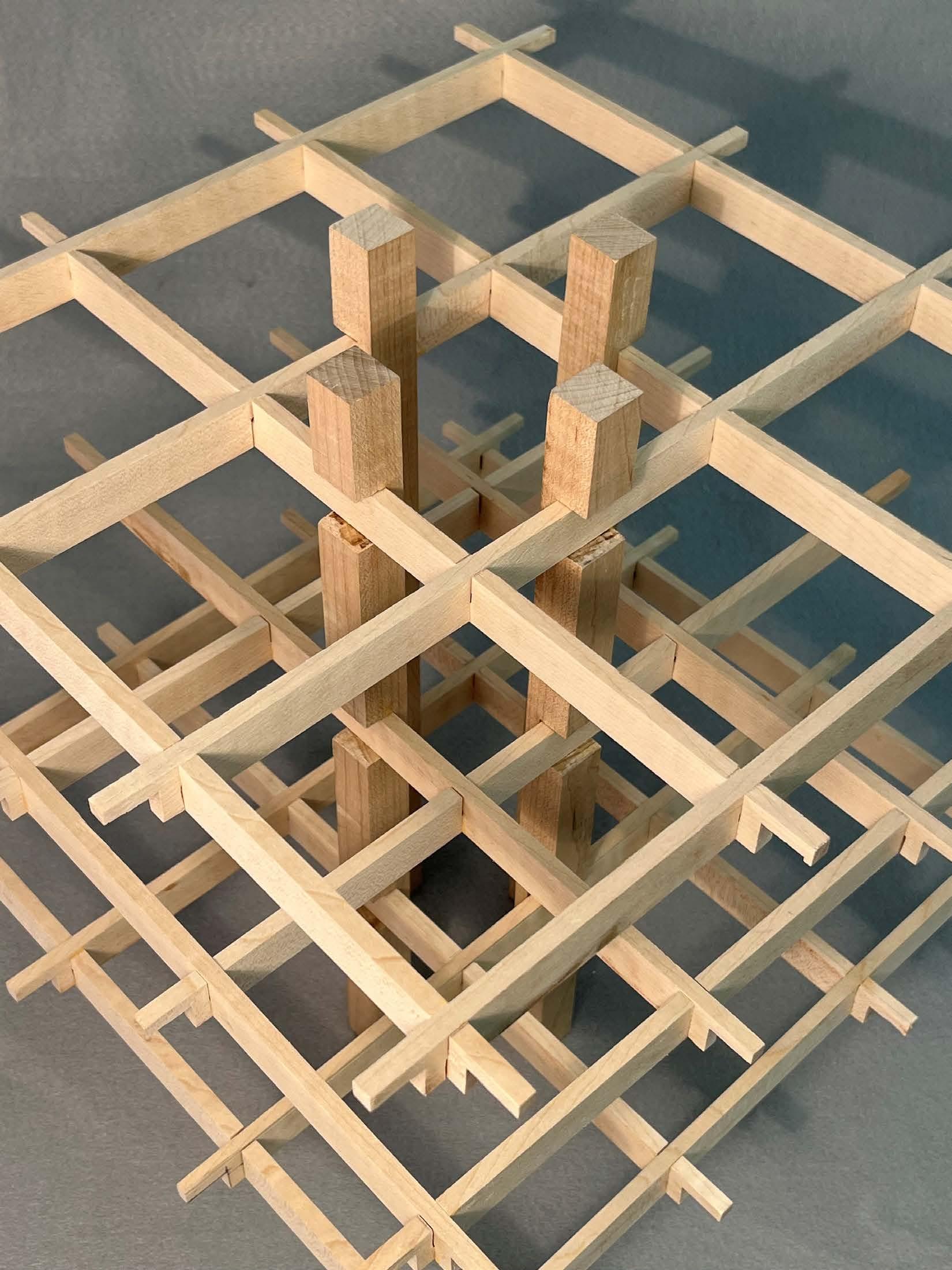 Visual intersest occurs at intersections. What happens when joints are expressed or suppressed? An assignment in architecture fabrication asked to machine an architecturally inspired model that addressed the theme of “intersection.”