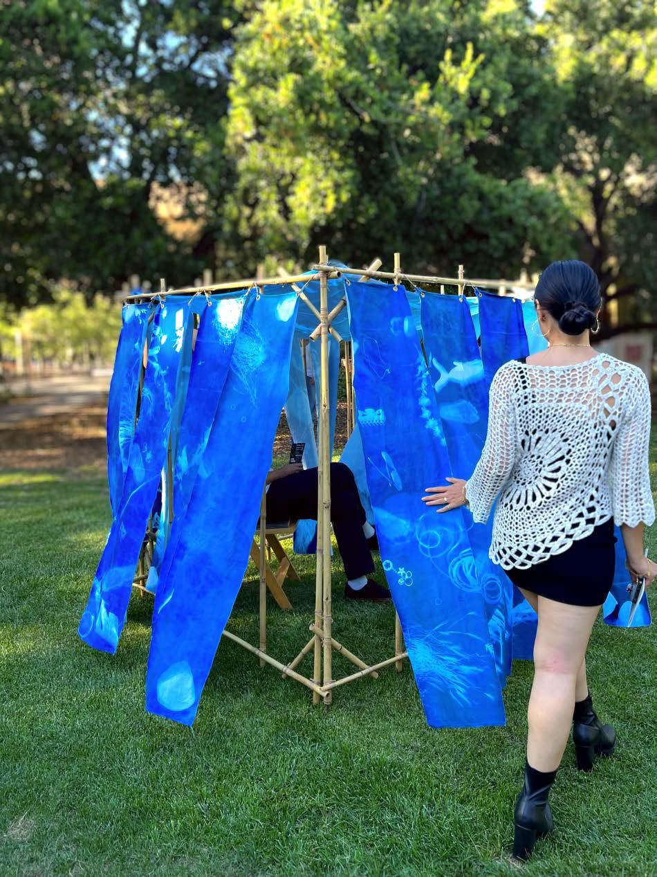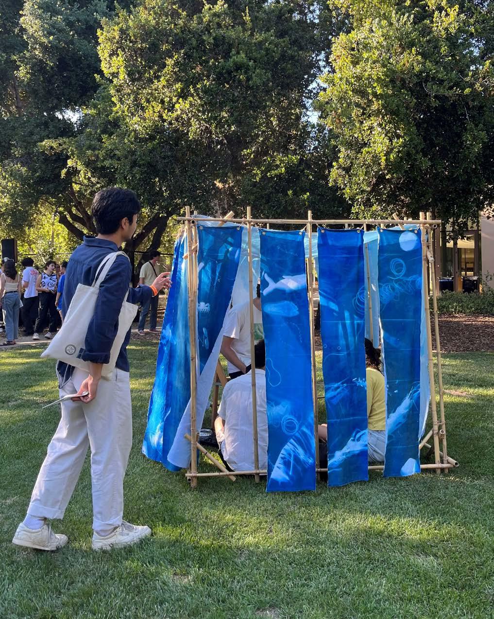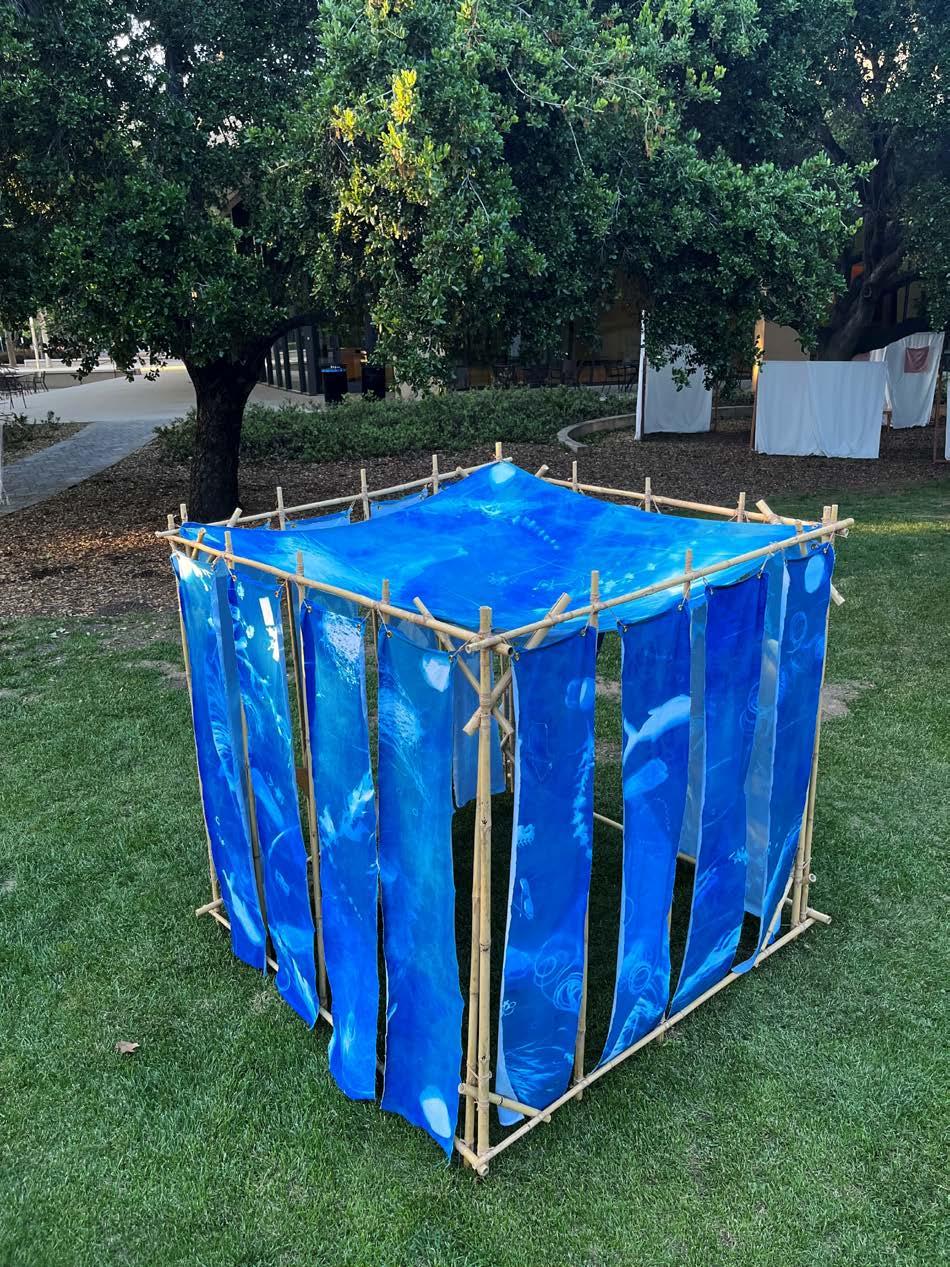 Bamboo, cordage, cyanotype print Frost Arts Ampitheater, Stanford University Sculpture installation Spring 2023