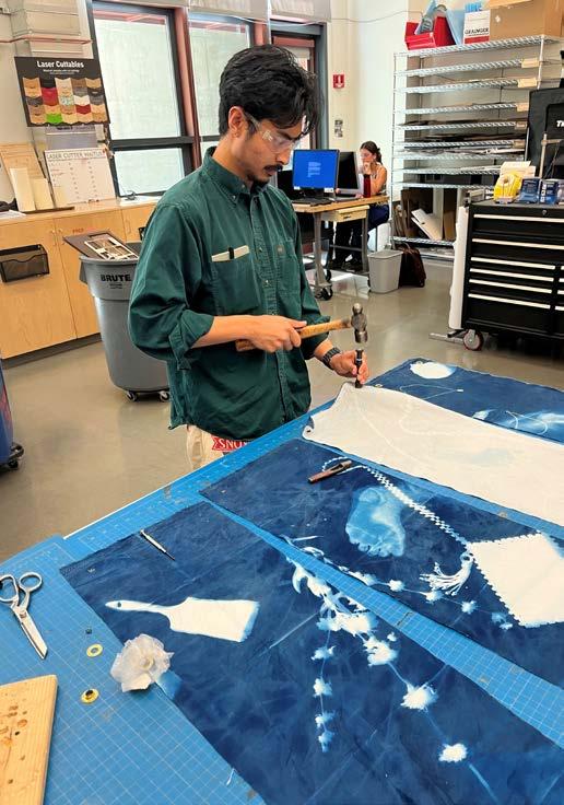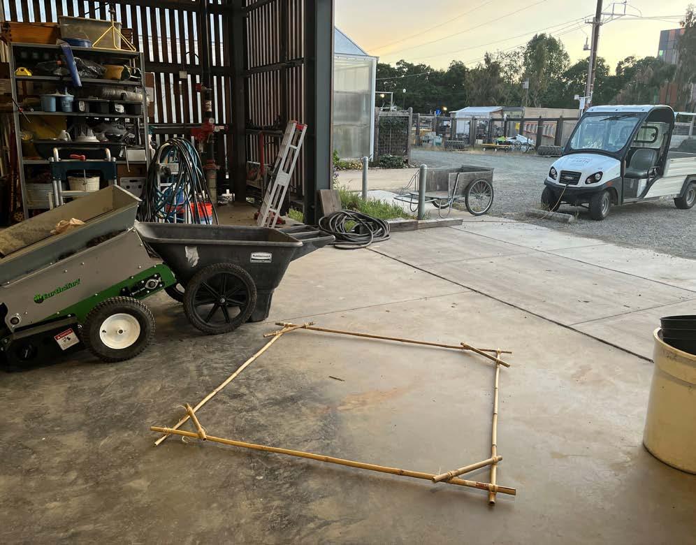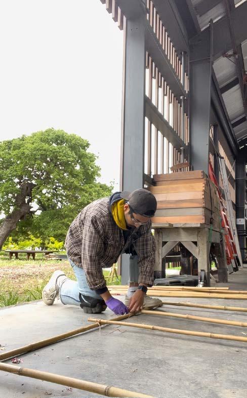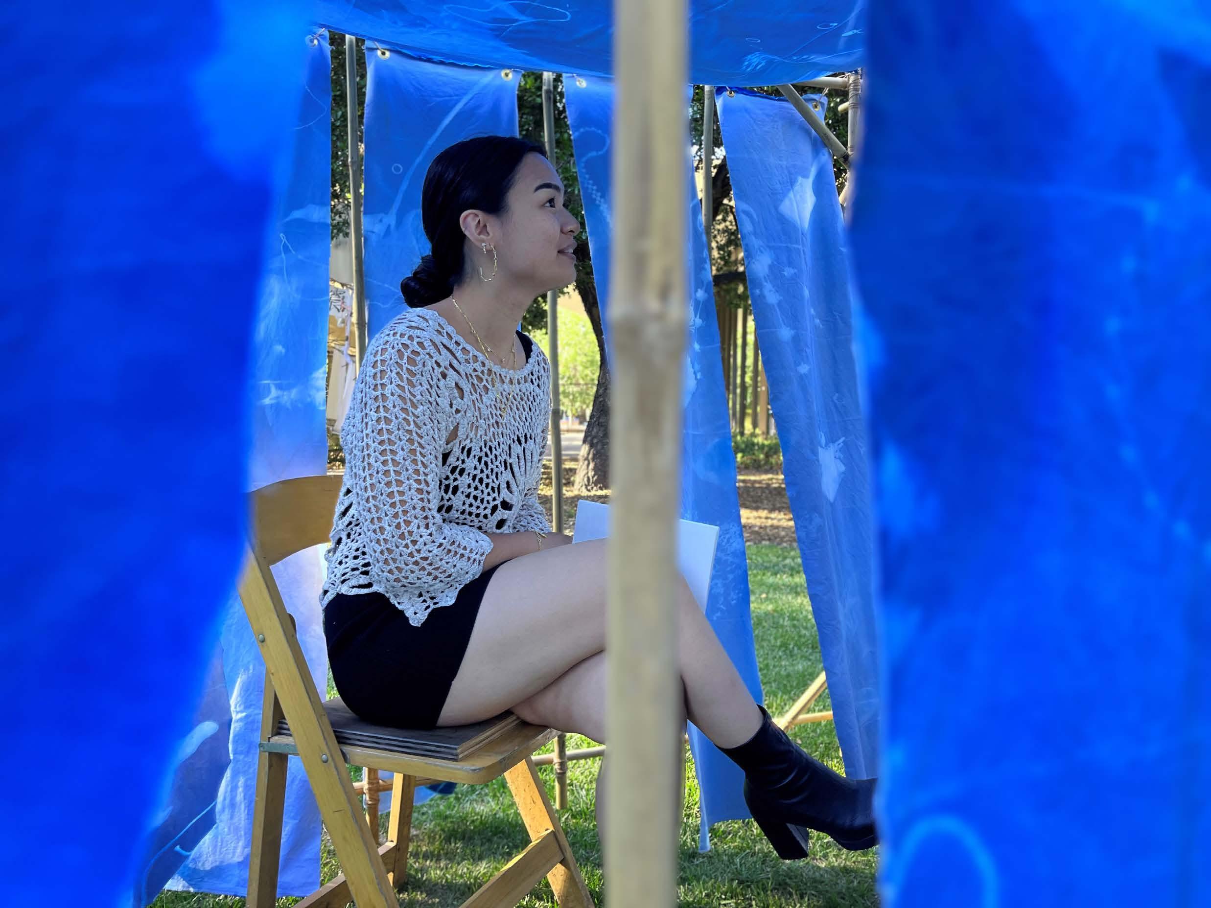 Bamboo, cordage, cyanotype print Frost Arts Ampitheater, Stanford University Sculpture installation Spring 2023