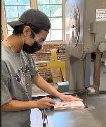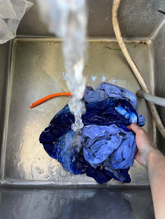 Cyanotype is fully washed in a solution of water and hydrogen peroxide to reveal final color, then rinsed clean.