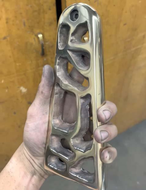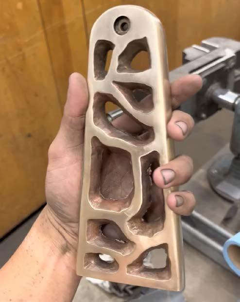 Bronze piece is roughly finished with an angle grinder
