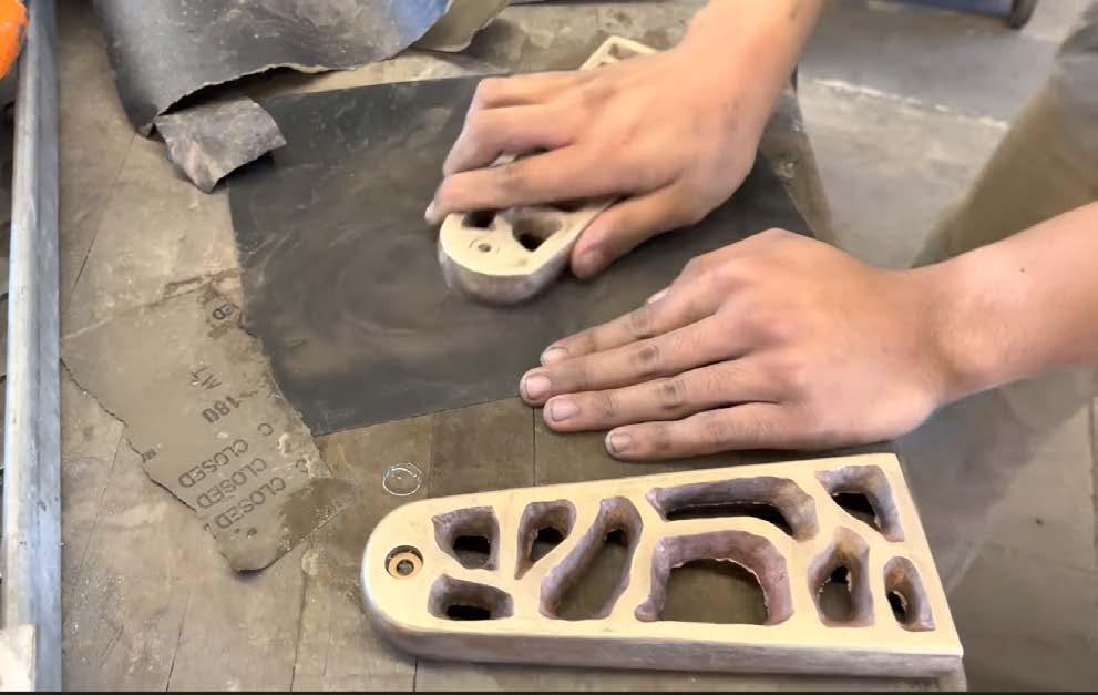 Bronze piece is hand sanded with increasingly finer grit