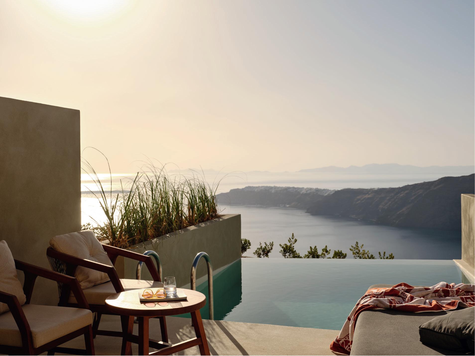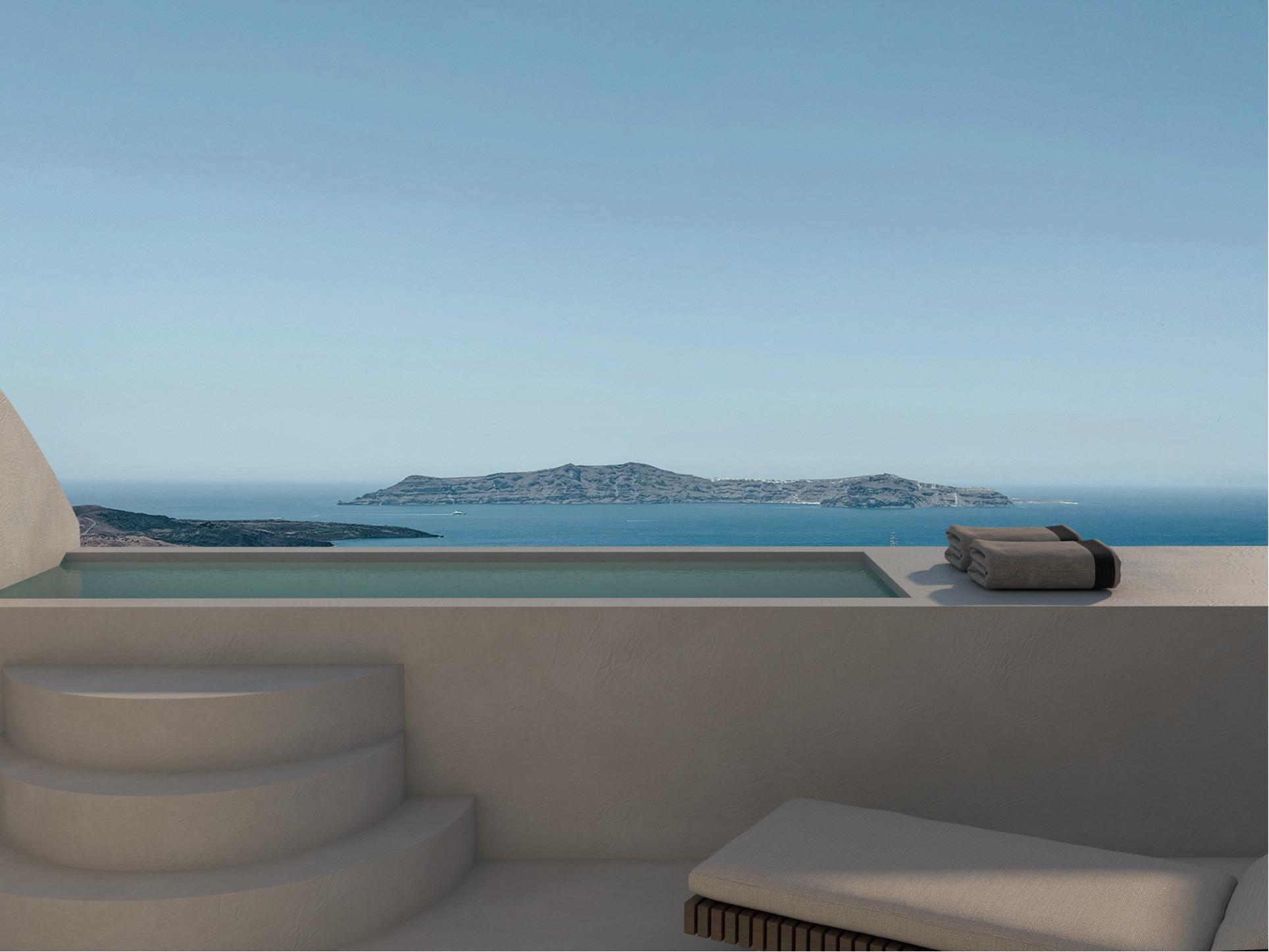 The Exclusive Suite offers an ultra-luxurious stay with mesmerizing views of the caldera and volcanic landscape. Recently renovated, this suite features a private infinity pool, blending modern elegance with natural beauty. With a spacious private veranda, it invites guests to unwind in unparalleled comfort while enjoying the stunning vistas of Santorini.