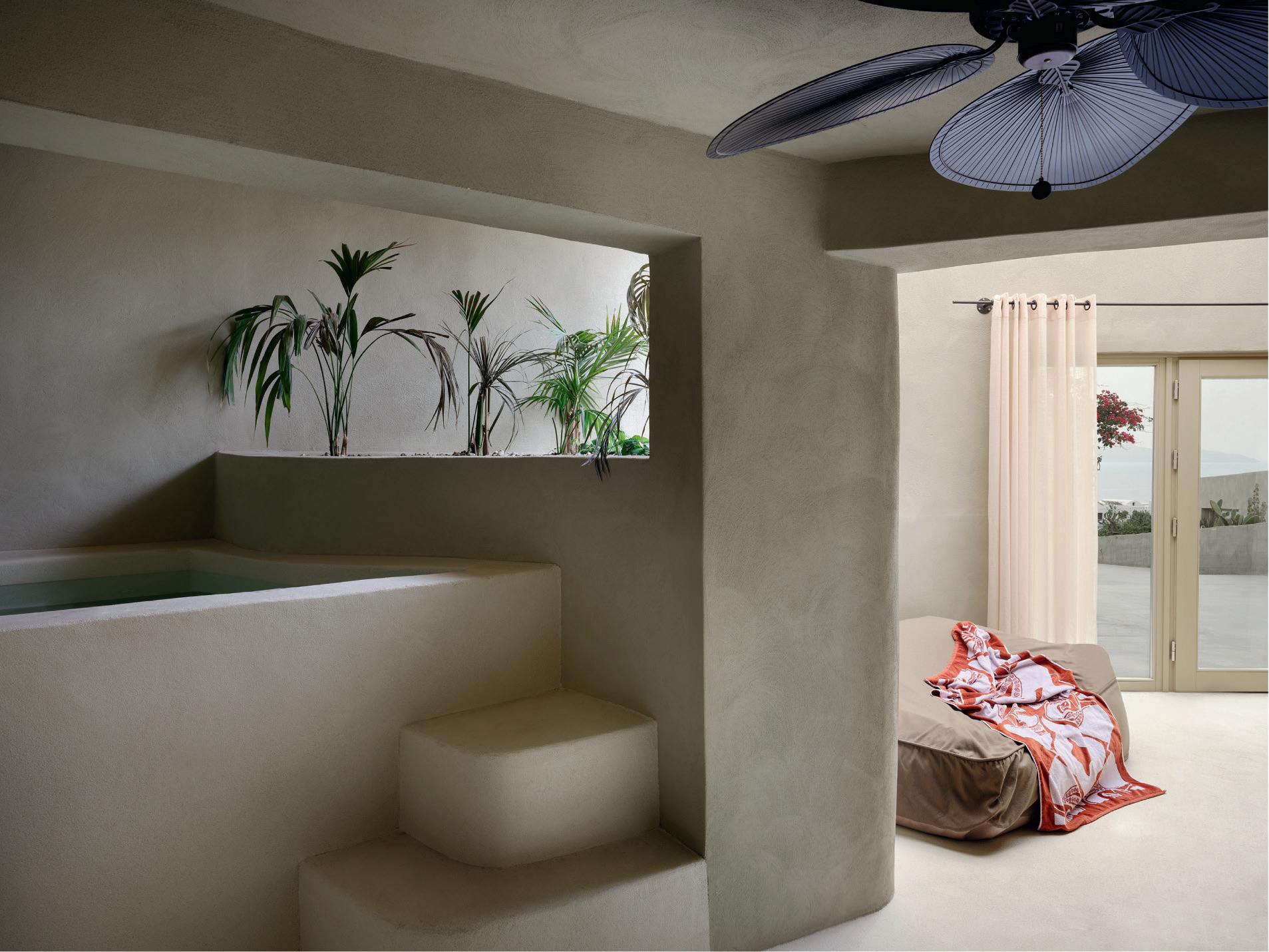Recently renovated, this open-plan suite features a private outdoor hot tub, creating the perfect setting for relaxation. With its serene design and spacious private veranda, it’s an ideal retreat for couples seeking an intimate and luxurious experience in Santorini.