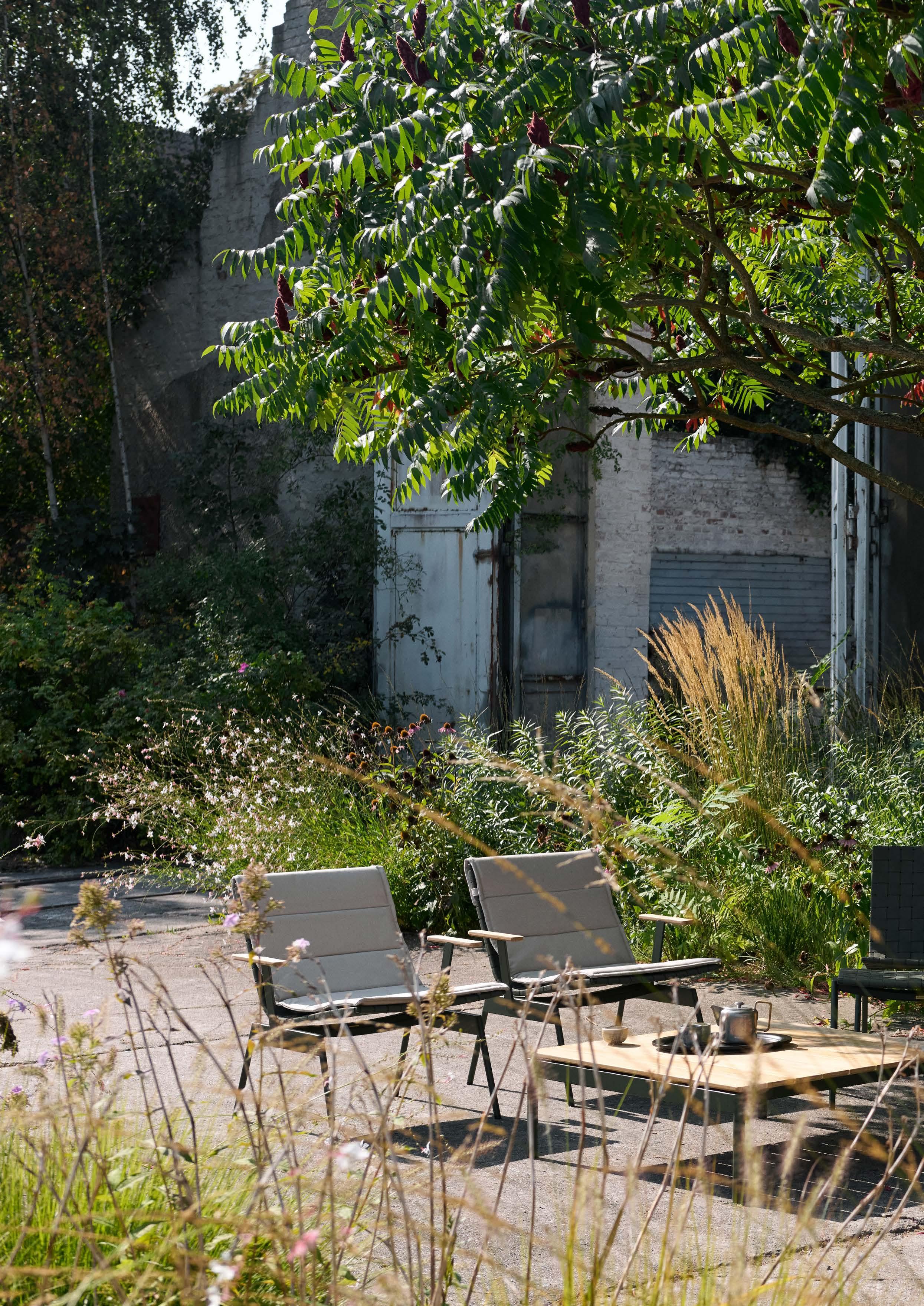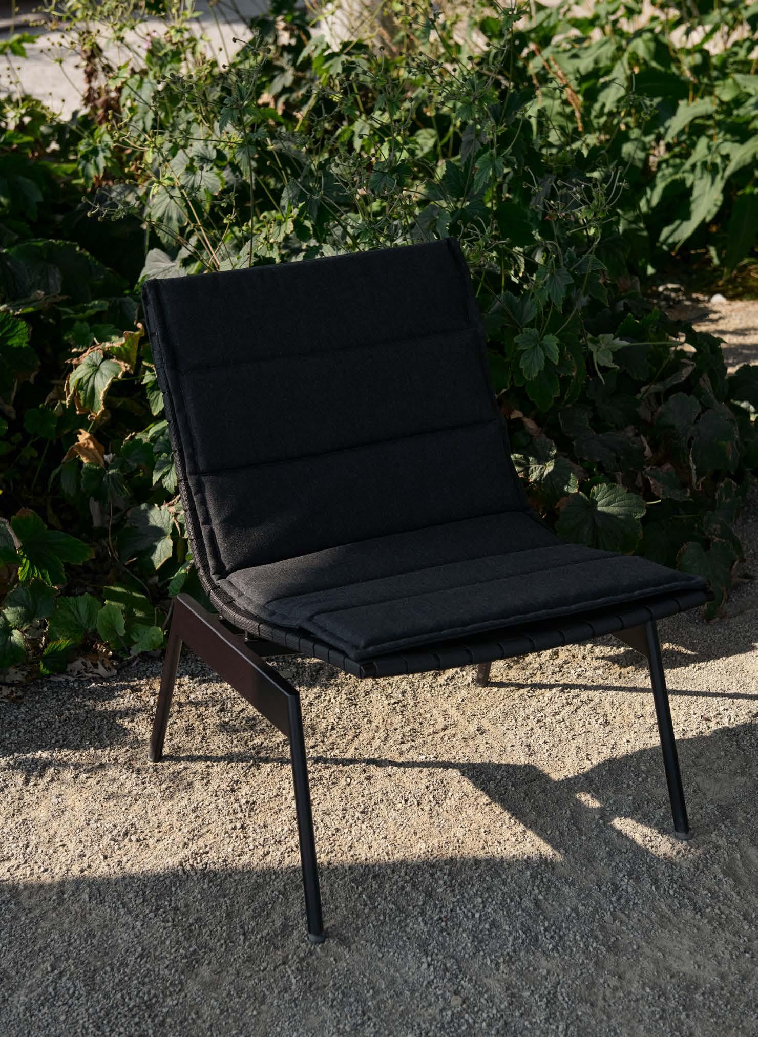 To add an additional layer of comfort, a precisely tailored cushion has been developed in Heritage Papyrus – a neutral beige-toned fabric, and Heritage Char – a bolder, dark fabric. The fabric is made from 50% recycled material and is weather, pilling and abrasion resistant.