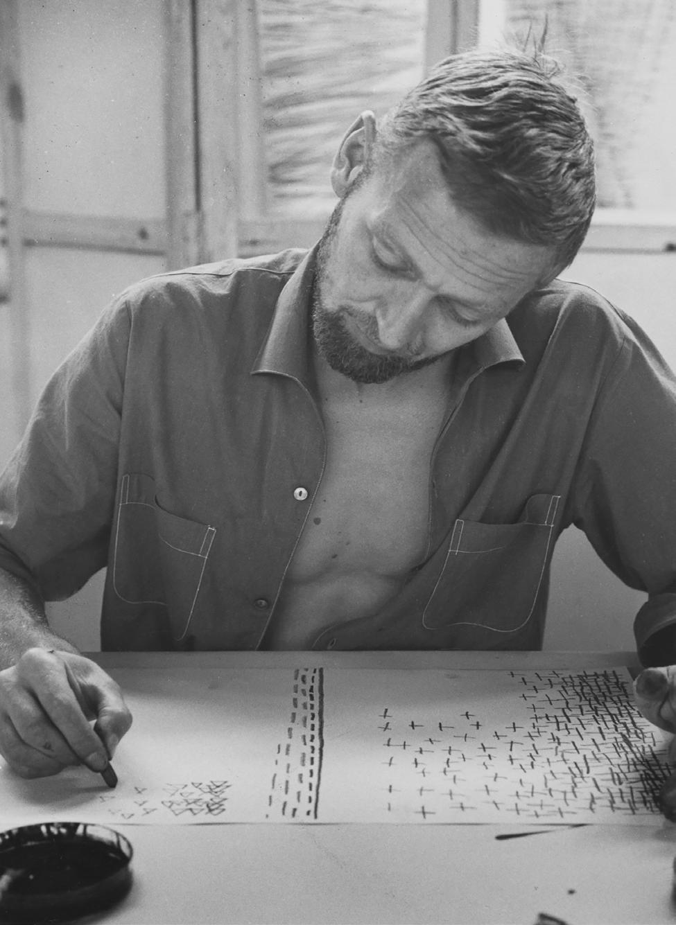 Robin Day in his studio at Cheyne Walk, London in 1956