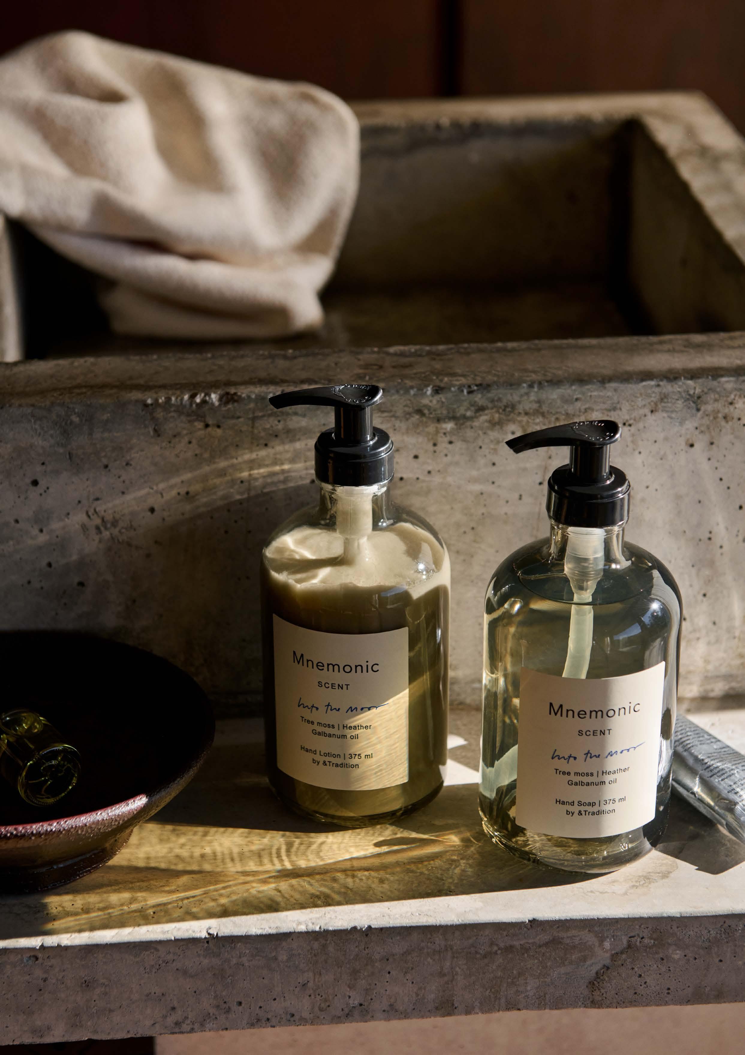 The Mnemonic collection is composed of five refined scented products including a hand soap, hand lotion, hand balm, scented candle and room spray – each one grounded in a trio of natural aromas. Mnemonic’s collection features three captivating, nature inspired scents: After the Rain, Into the Moor, and Turning Tide.