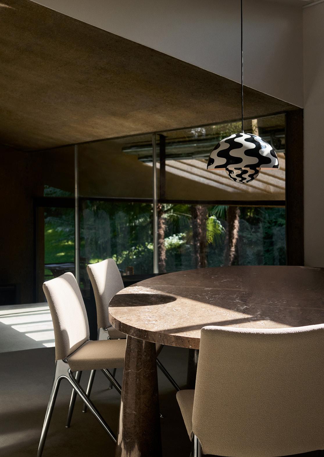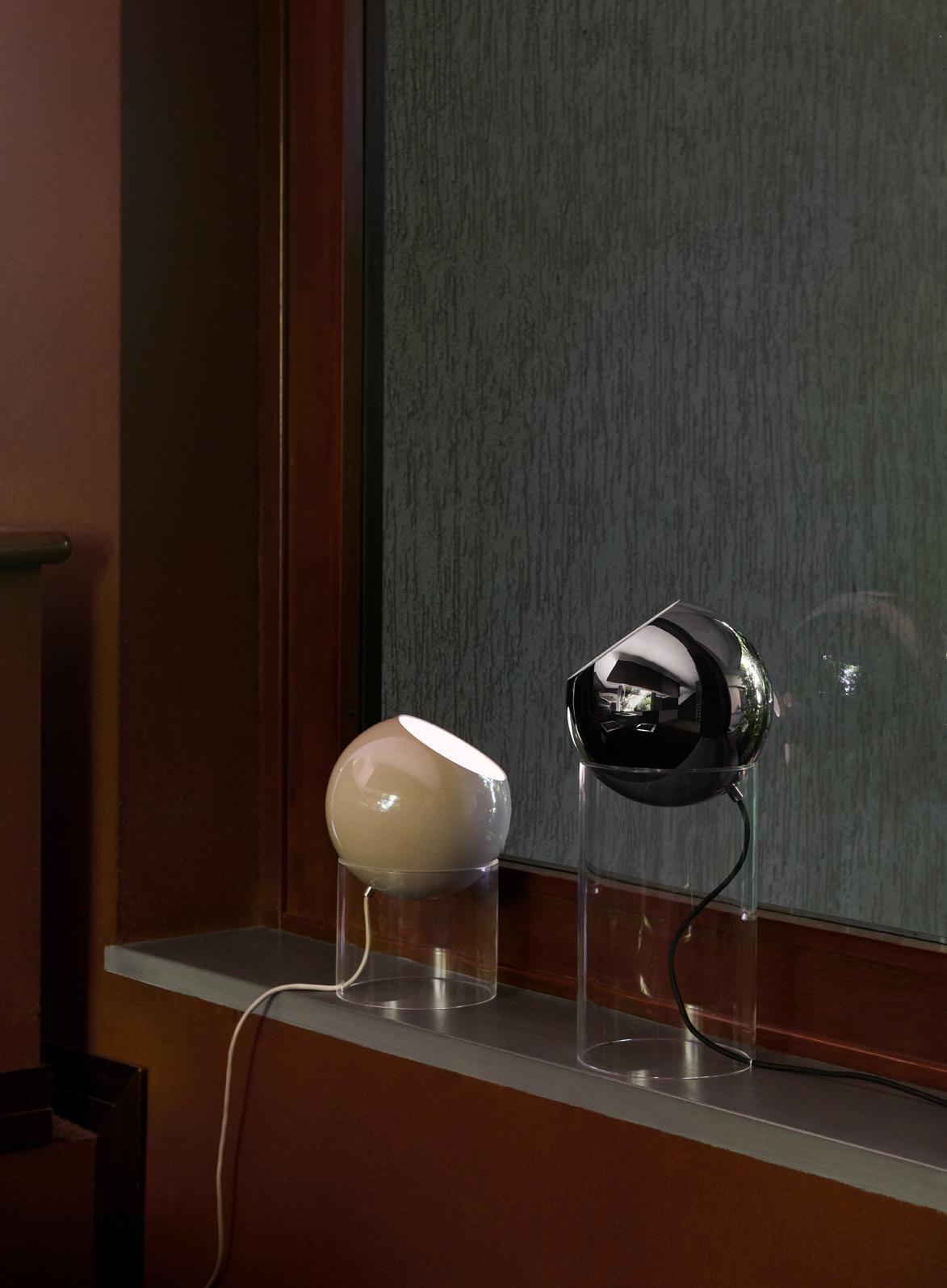 Originally designed in 1959, the Topan table lamp brings a new perspective to one of Verner Panton’s most recognisable forms, transforming the pendant into a sculptural, freestanding light that plays with transparency and levity.