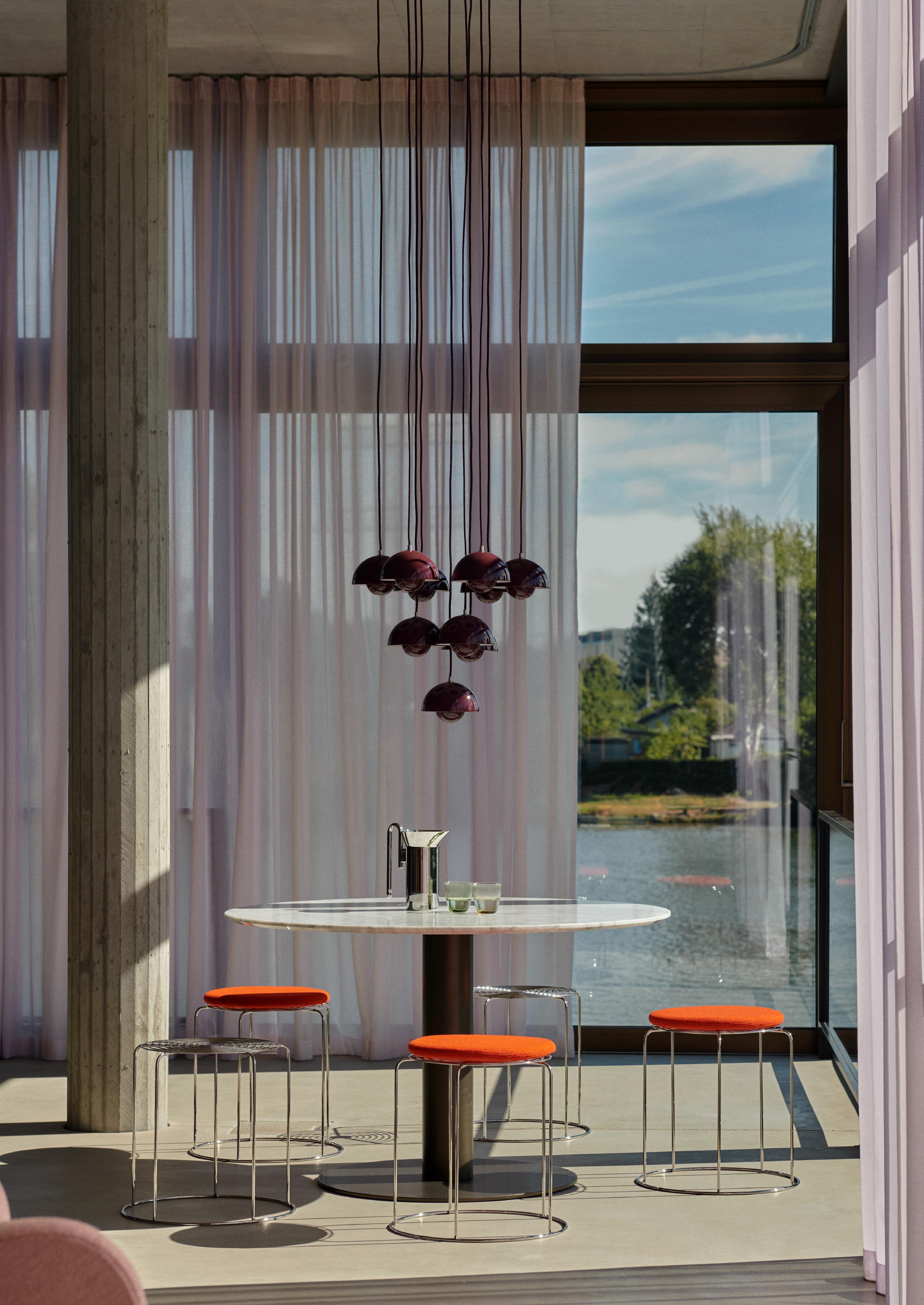 Combining enduring elegance with a playful injection of colour, the Flowerpot lamp by Verner Panton remains an iconic resident within our lighting collection. Available in an array of bold hues, the simple design has the ability to blend with every spatial and aesthetic sensibility – from bright kitchen counters to calm home offices.