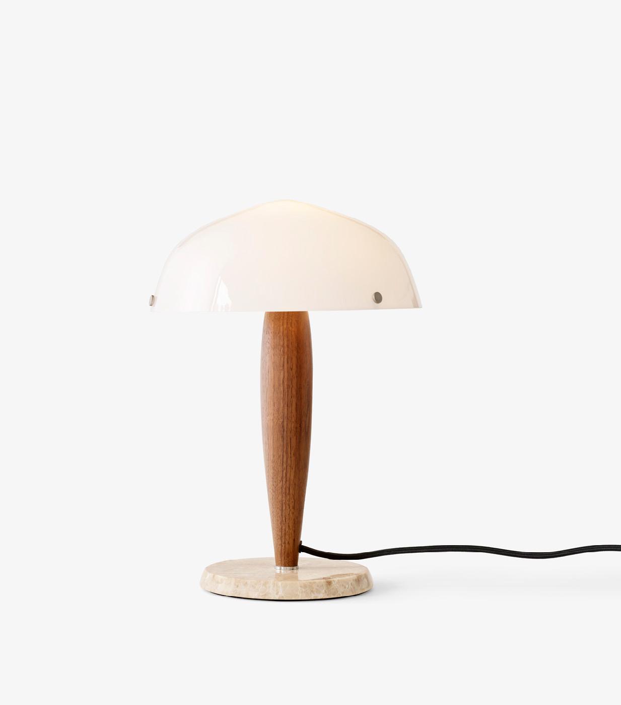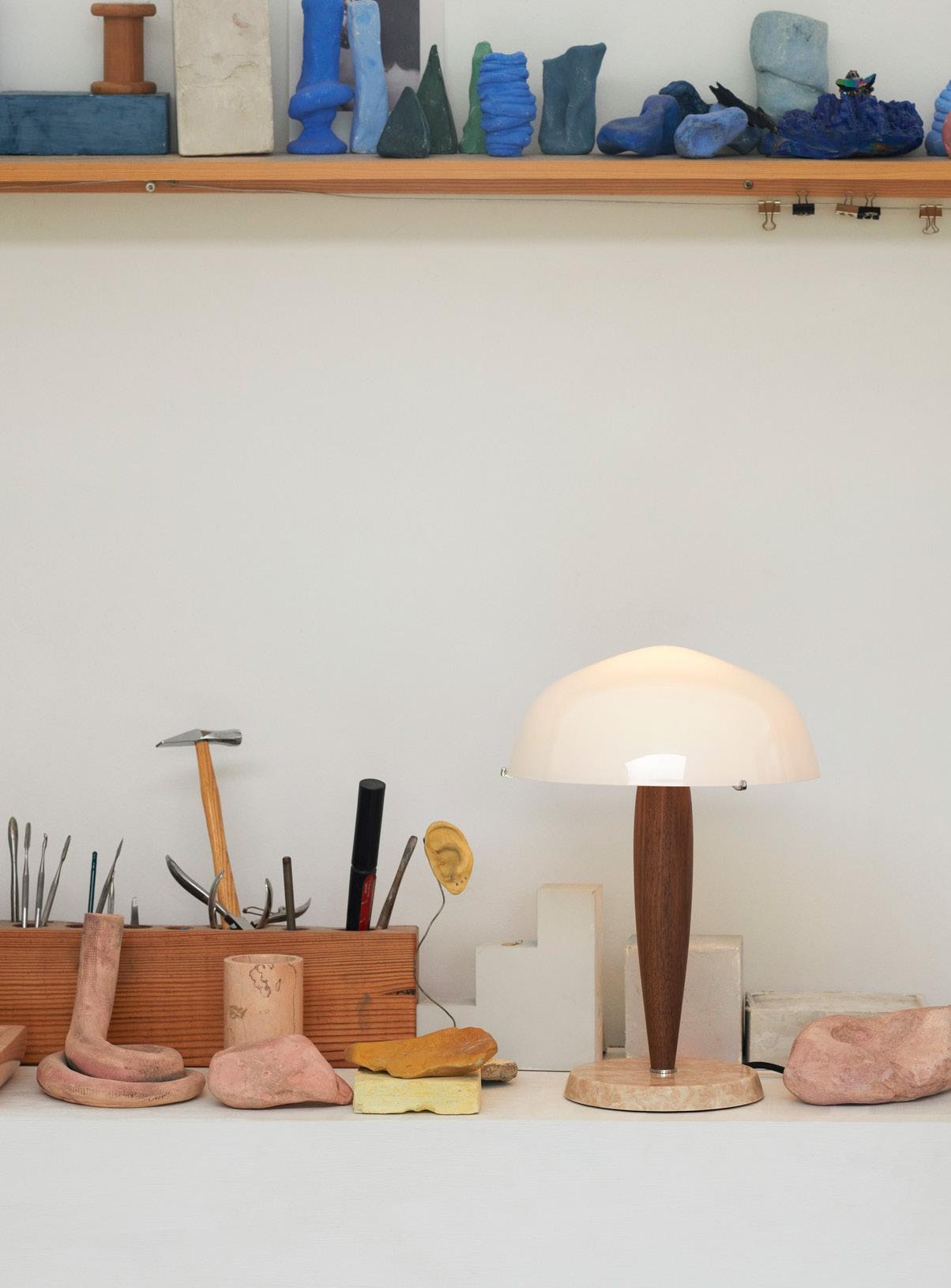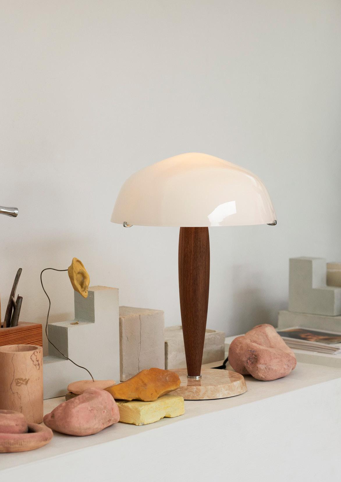 Delicately proportioned and crafted from opal glass, richly-coloured walnut and cream marble, the Herman lamp showcases a trio of tactile, natural materials. As diffused light radiates through and beneath its lampshade to foster a cosy atmosphere, a sense of tranquility is established among those who sit under its glow.