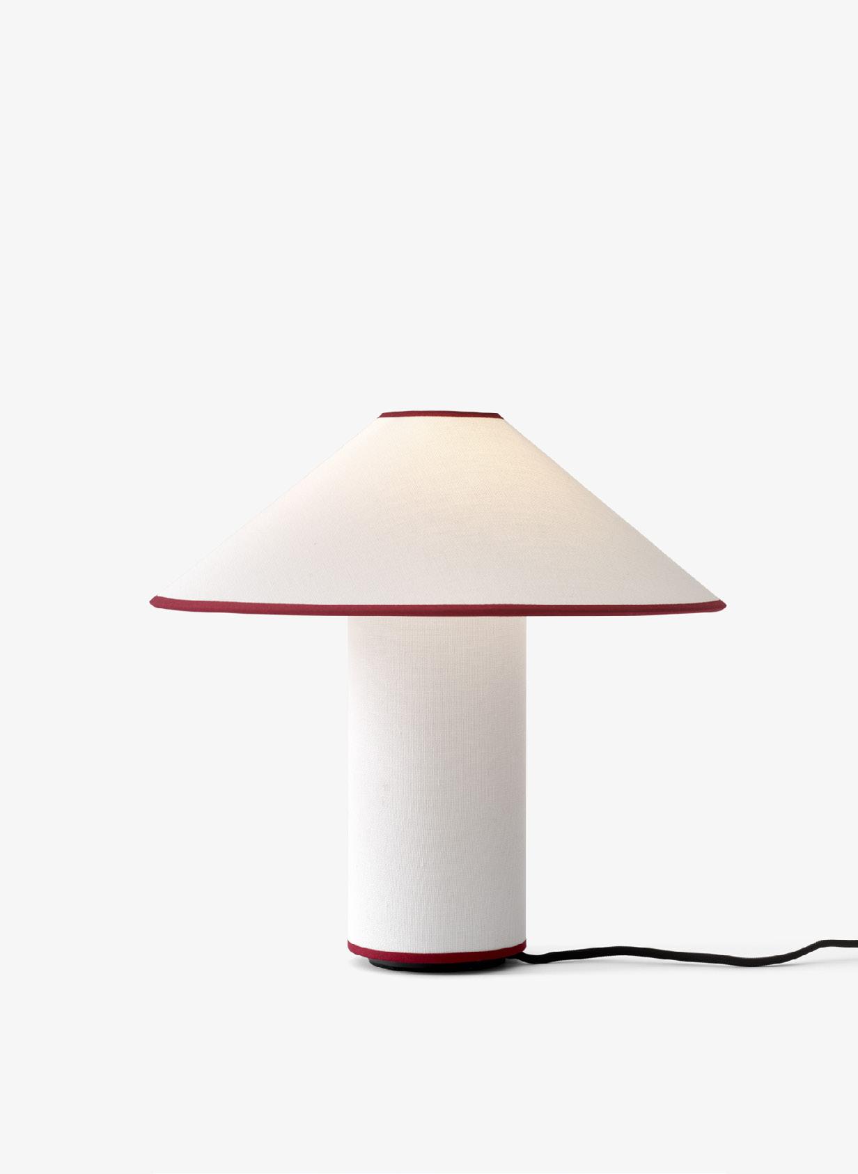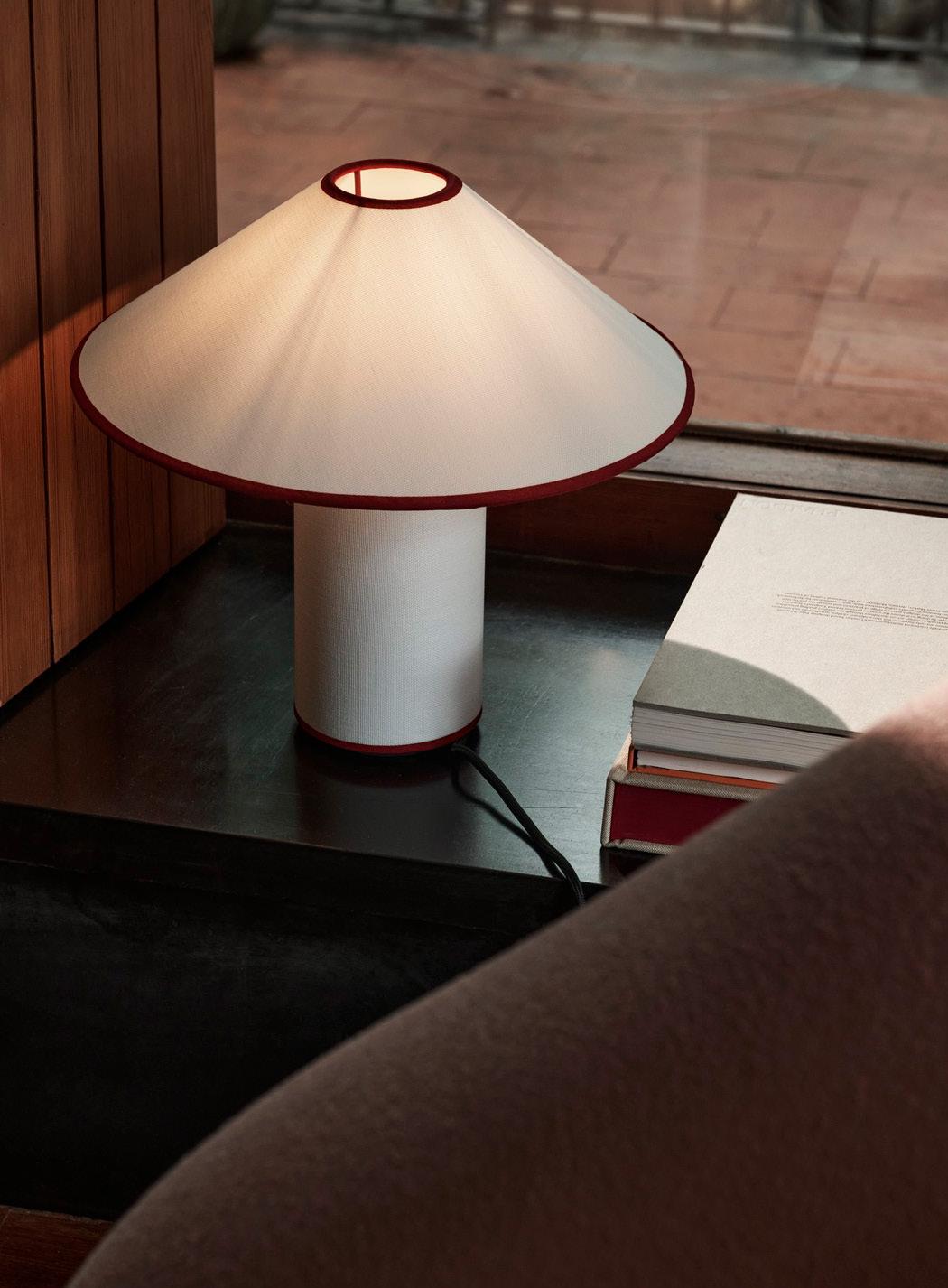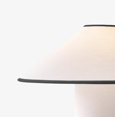 Crafted as a modern interpretation of the fabric lamp, Colette is both tactile in materiality and discerning in form. A truly distinctive piece, Colette’s classic charm is enhanced by a contrasting trim in black or merlot that frames the lampshade and base.