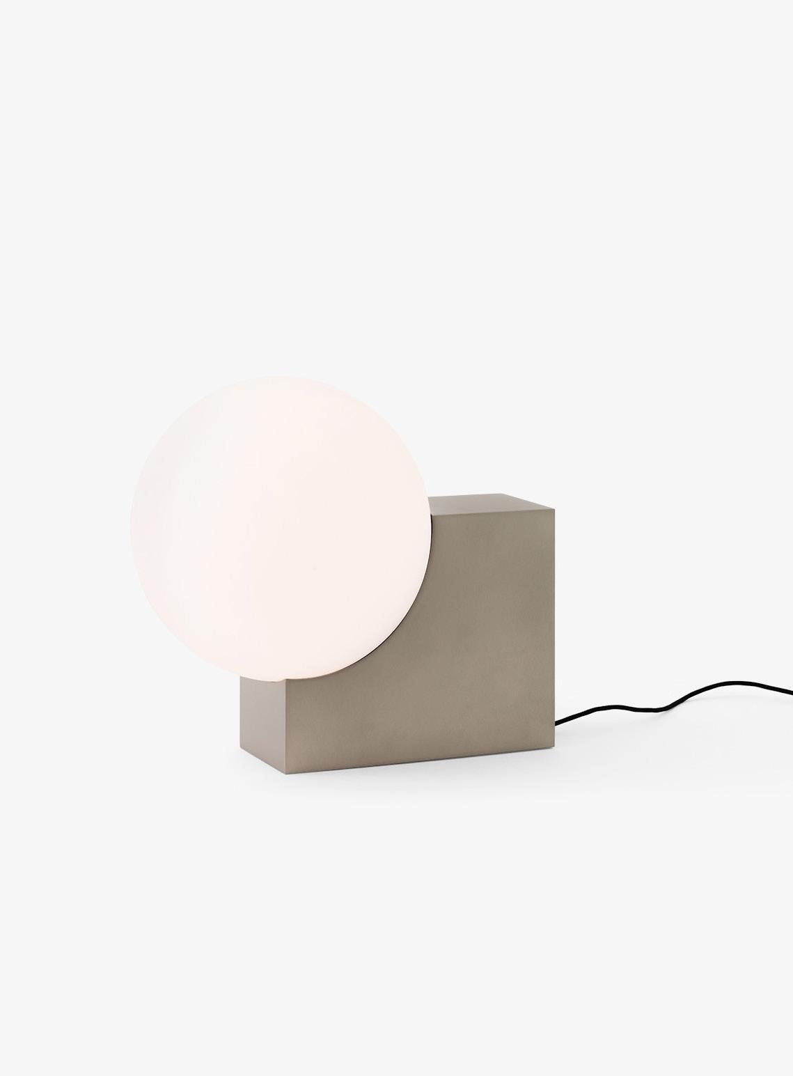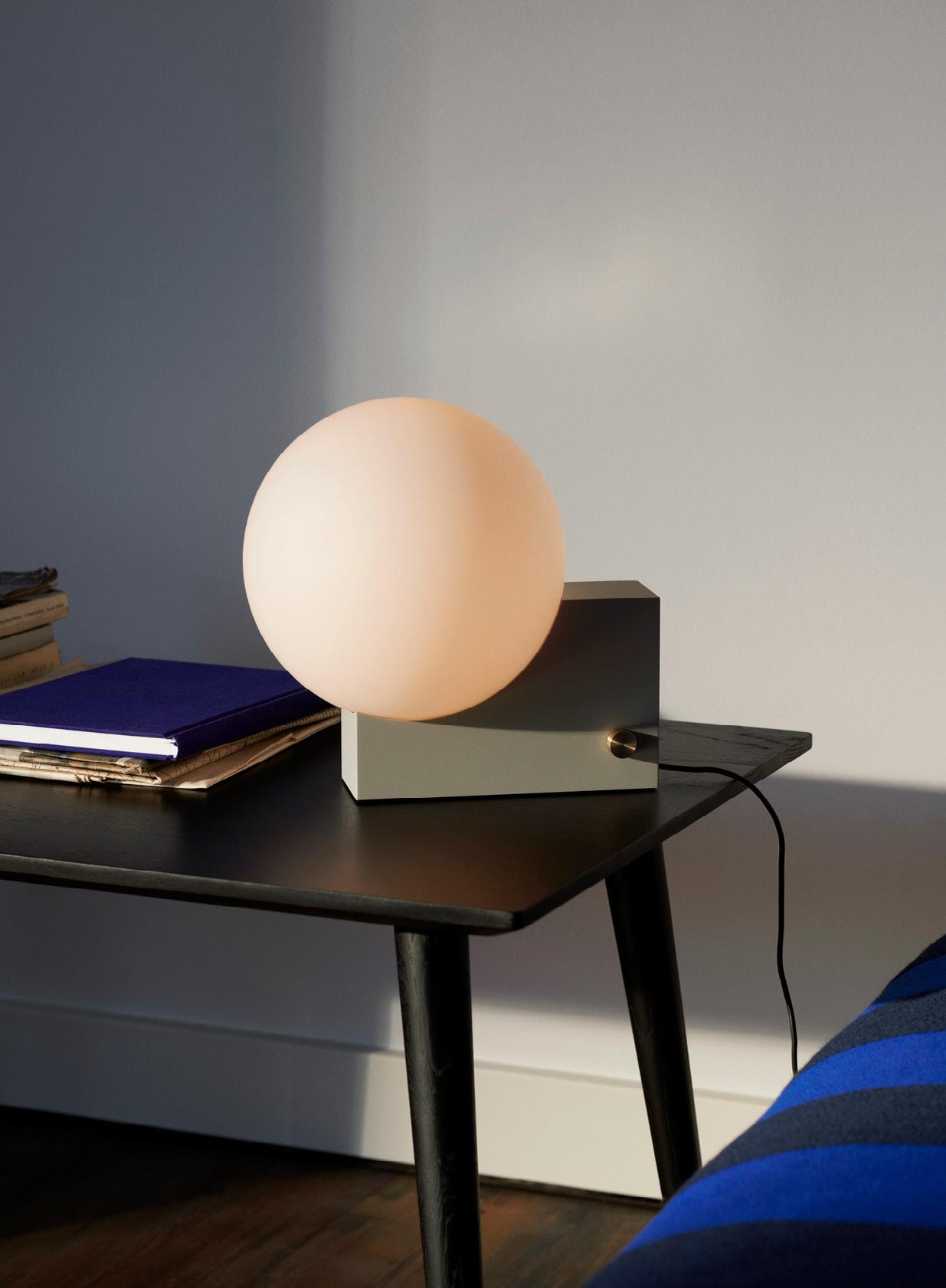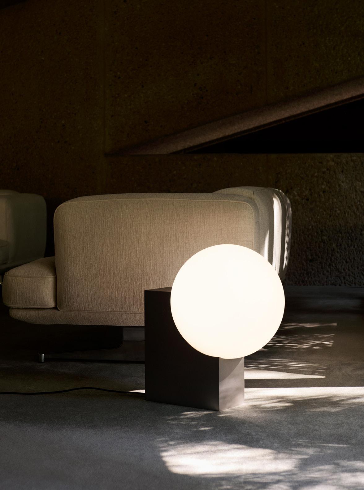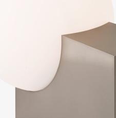 Denoted by its cubic base and curved opal shade, the Journey lamp exhibits an interplay between solid and translucent forms. With its sleek and geometrically playful character, the Journey lamp is a visually striking yet functional addition to any room.