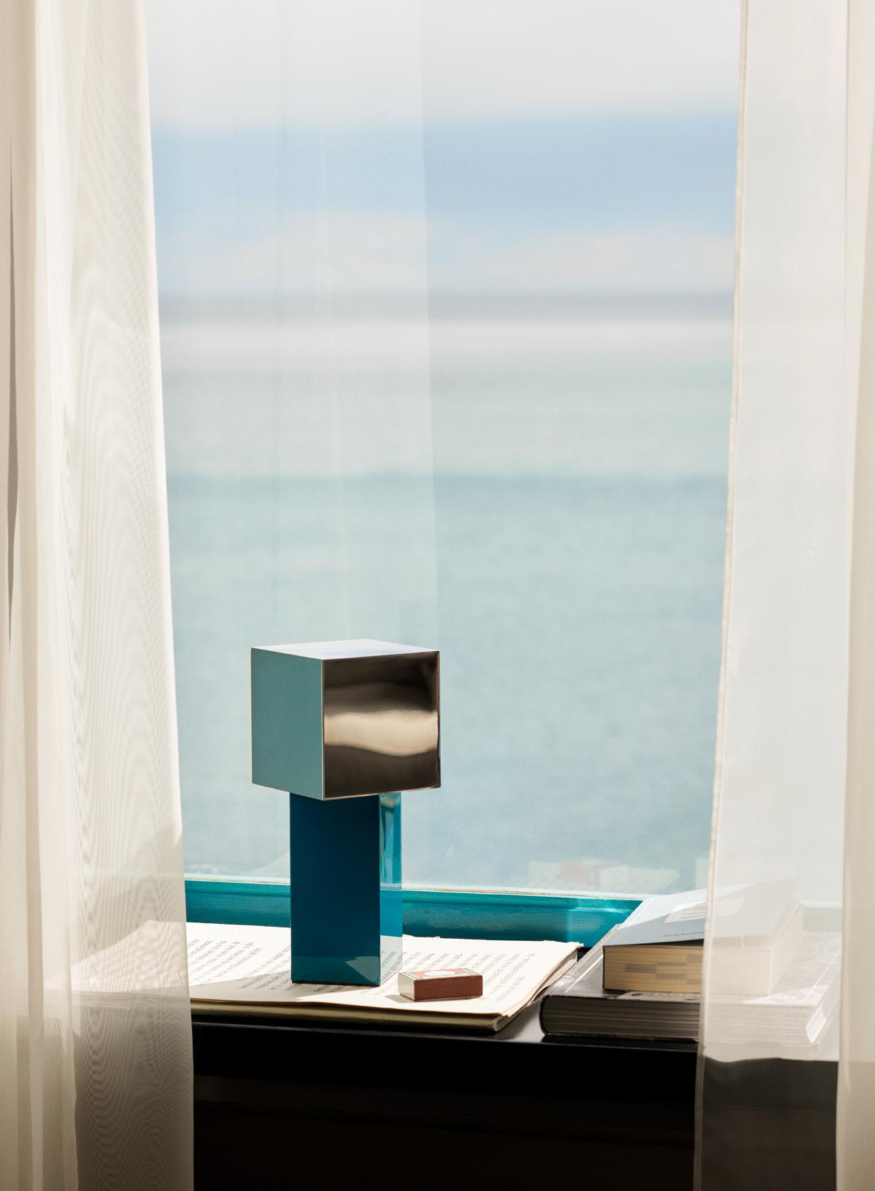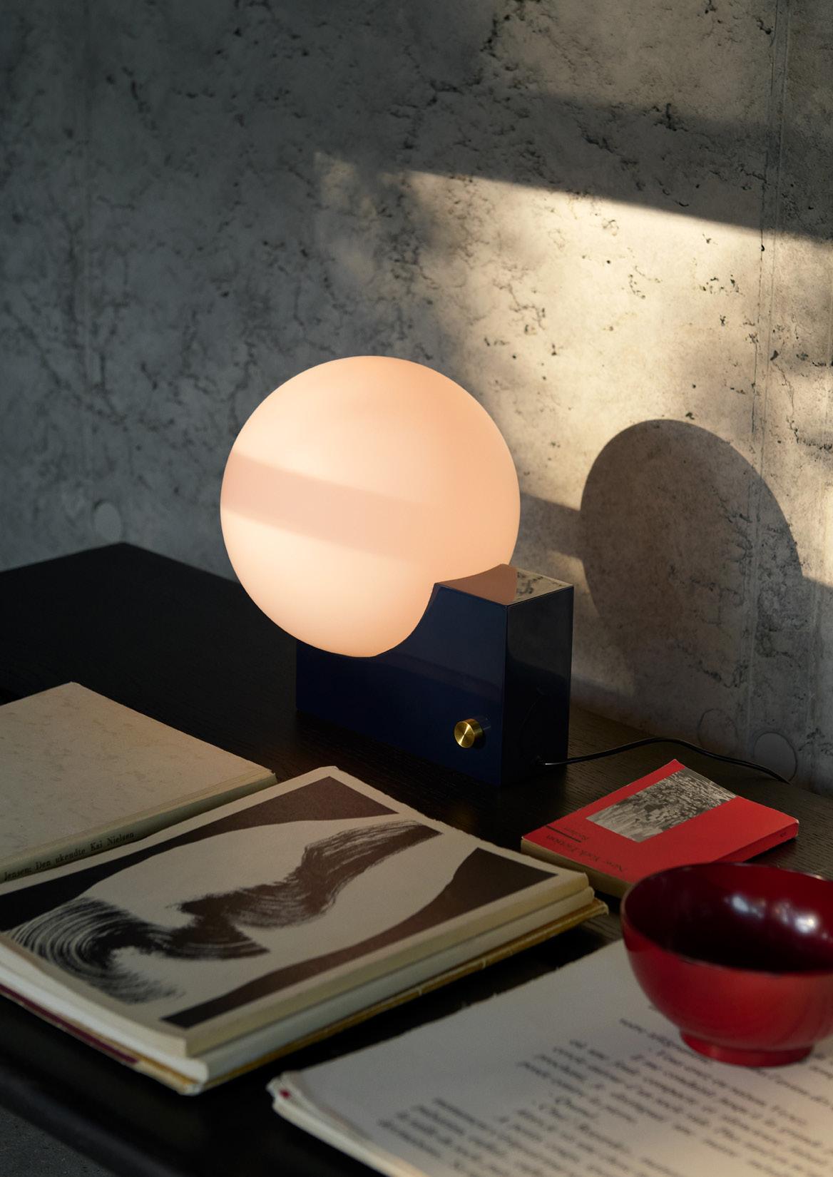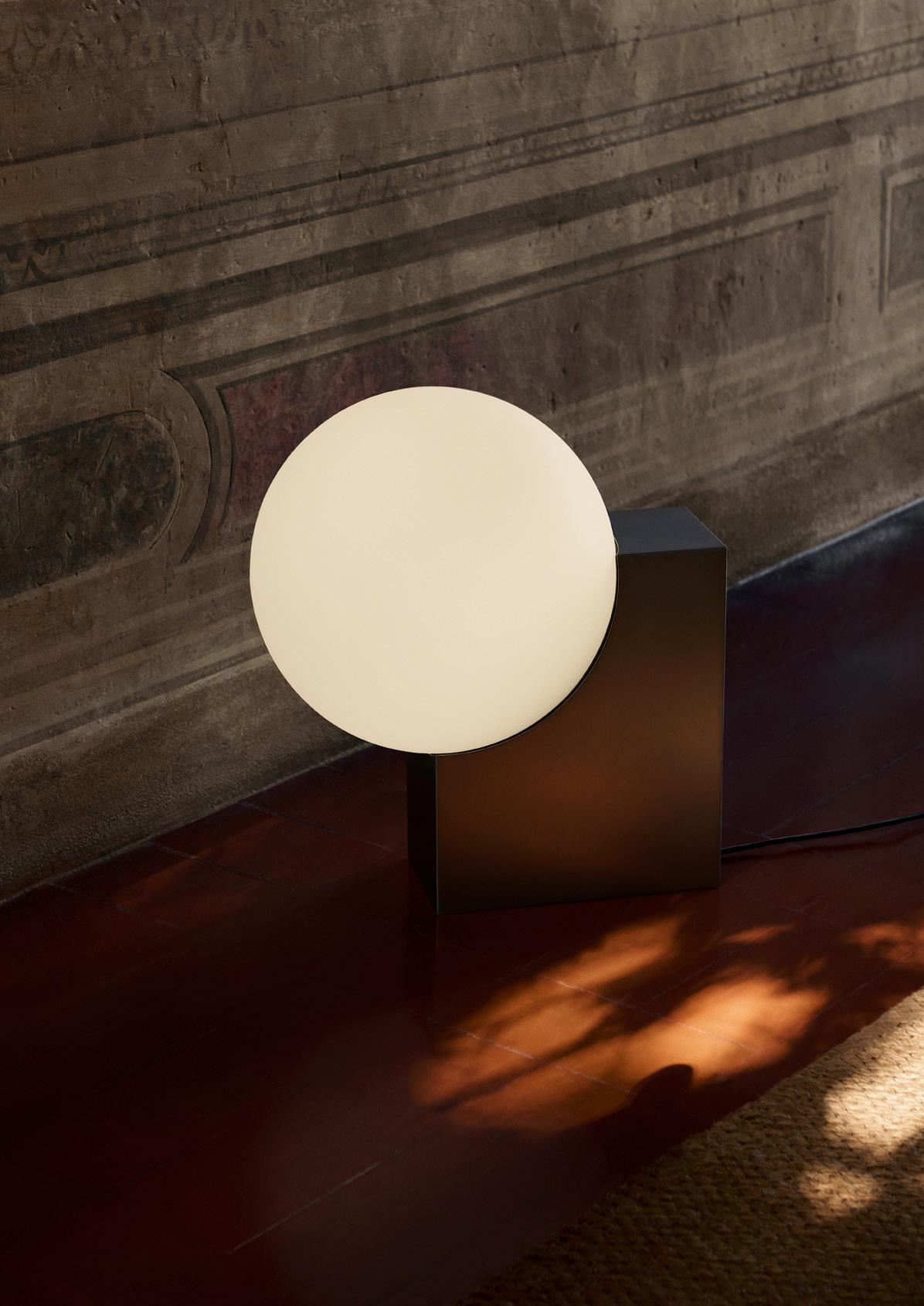 Denoted by its cubic base and curved opal shade, the Journey lamp exhibits an interplay between solid and translucent forms. With its sleek and geometrically playful character, the Journey lamp is a visually striking yet functional addition to any room.