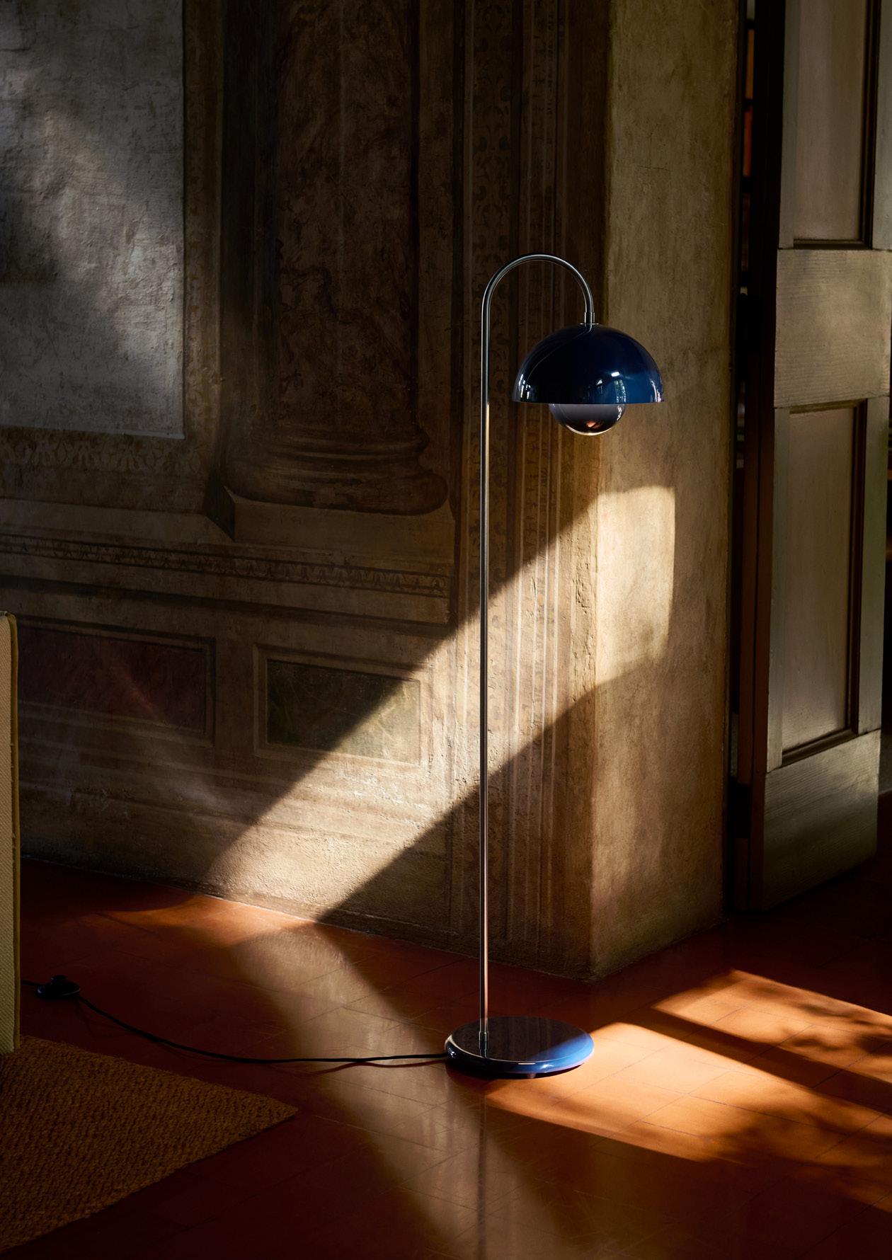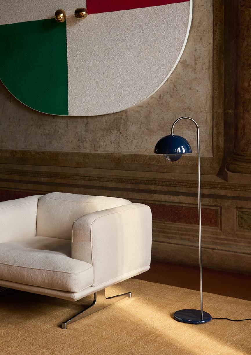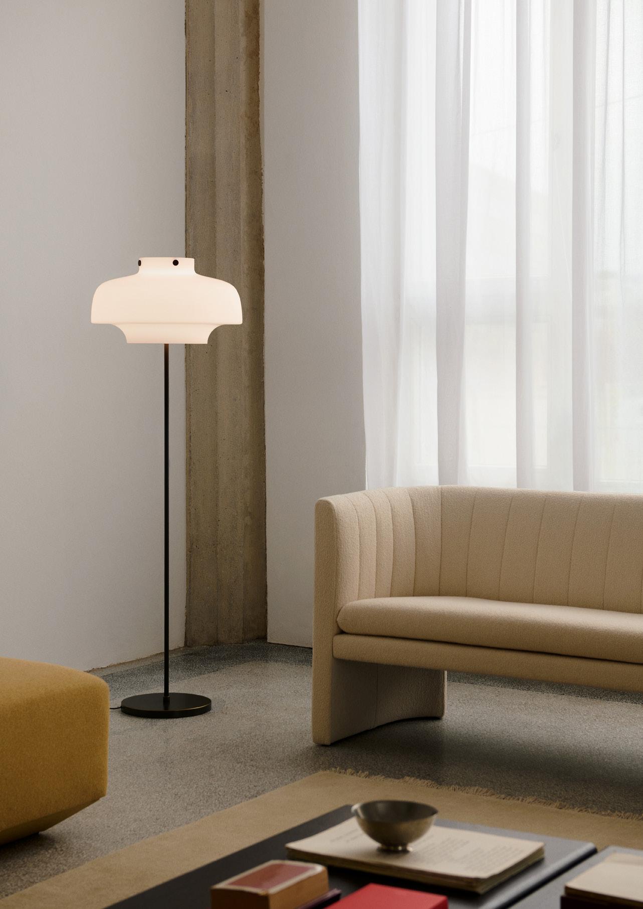 Originally designed in 1959, the Topan floor lamp brings a new perspective to one of Verner Panton’s most recognisable forms, transforming the pendant into a sculptural, freestanding light that plays with transparency and levity.