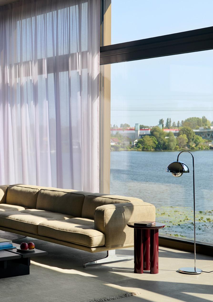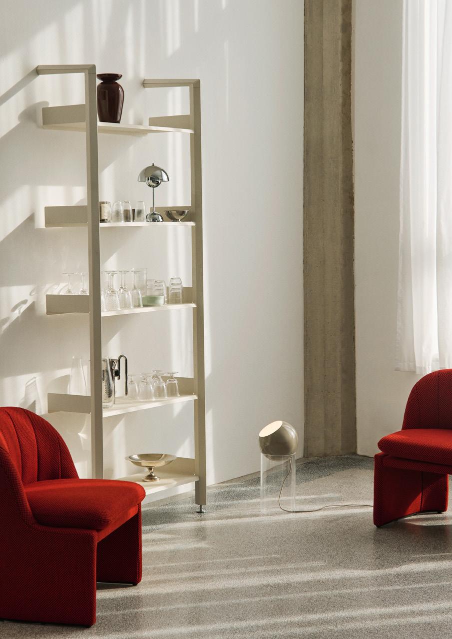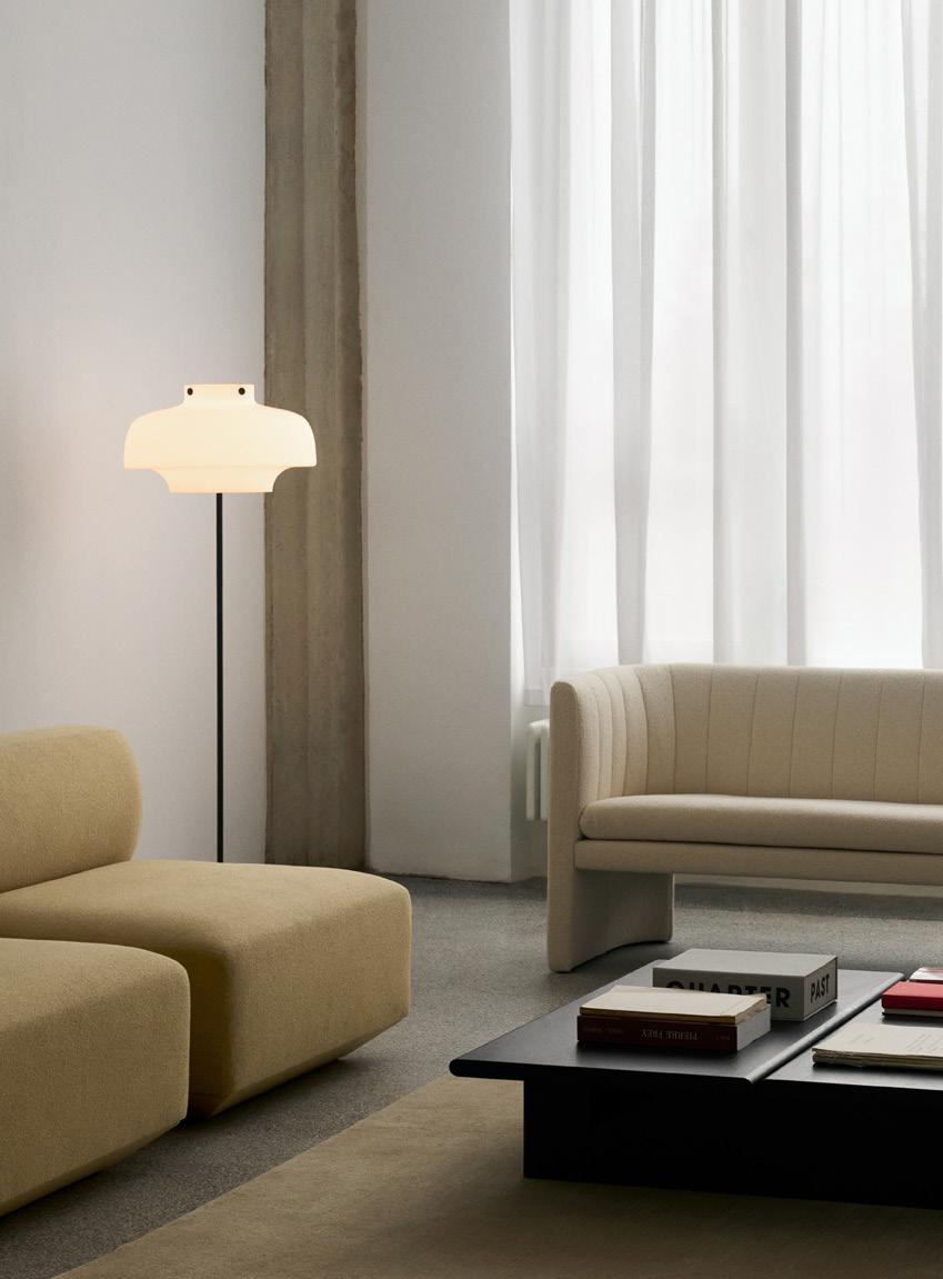 Originally designed in 1959, the Topan floor lamp brings a new perspective to one of Verner Panton’s most recognisable forms, transforming the pendant into a sculptural, freestanding light that plays with transparency and levity.