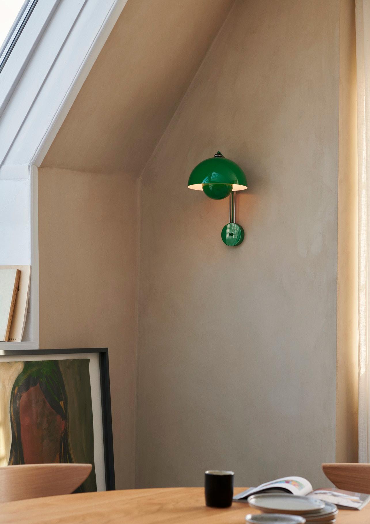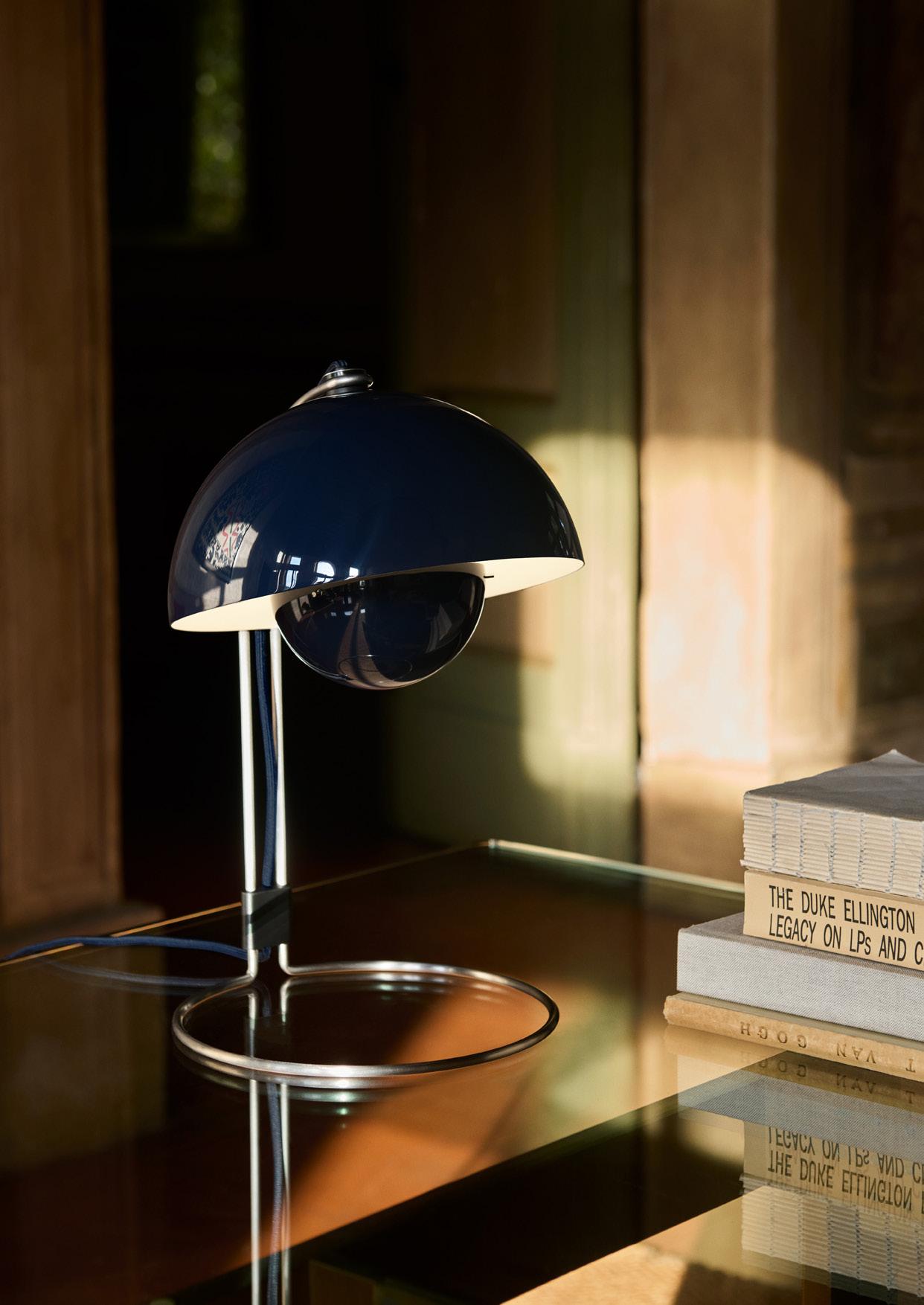 Reflecting the same iconic design as the table lamp, the petite proportions of the VP9 have the added advantage of being mobile. The lamp’s deliberately lightweight design and cordless feature allow it to be easily moved from table to counter as needed.