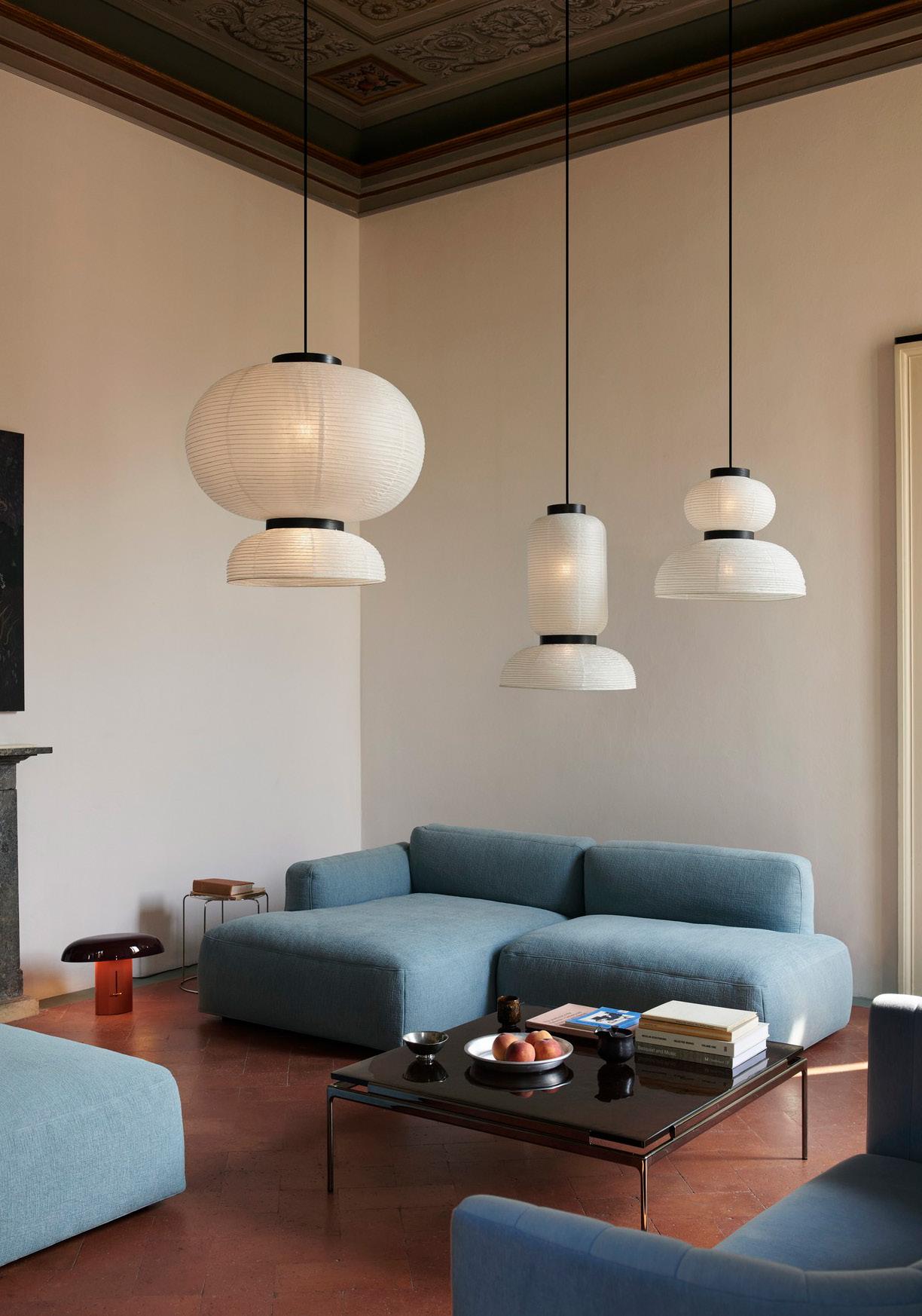 With its structural lightness, the Formakami lamp is a contemporary take on traditional Asian paper lanterns.