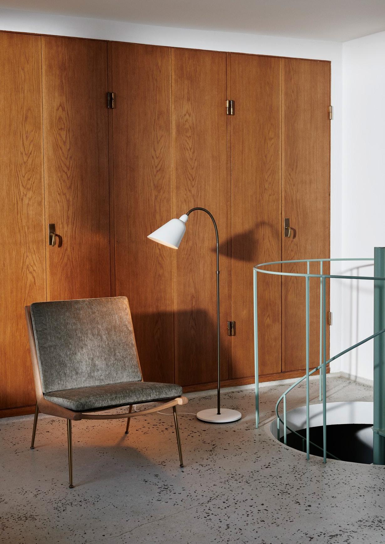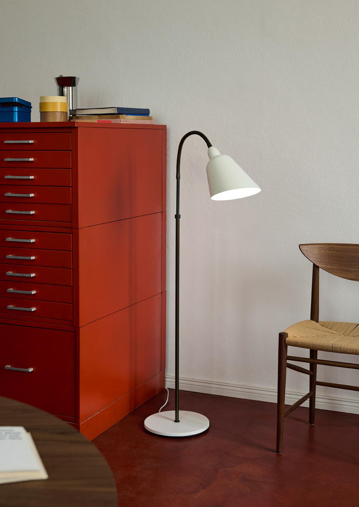 Denoted by its Modernist silhouette, the simple form of the Bellevue floor lamp belies its aesthetic elegance and graceful silhouette. With its conveniently adjustable stem, the functional design lends itself to every environment –from quiet reading nooks, to offices and lounges.