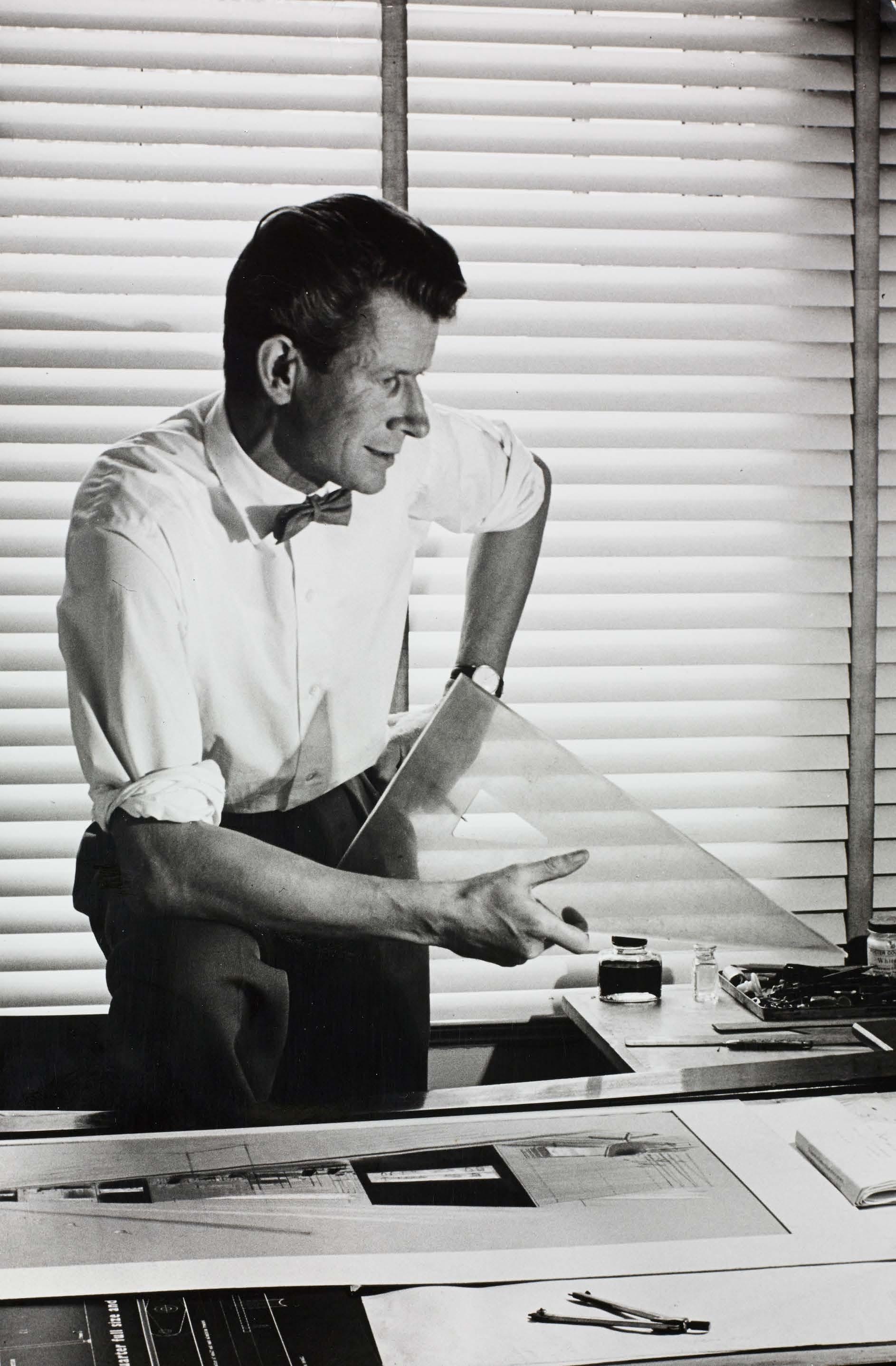 Robin Day in his studio at Cheyne Walk, London in 1956 |