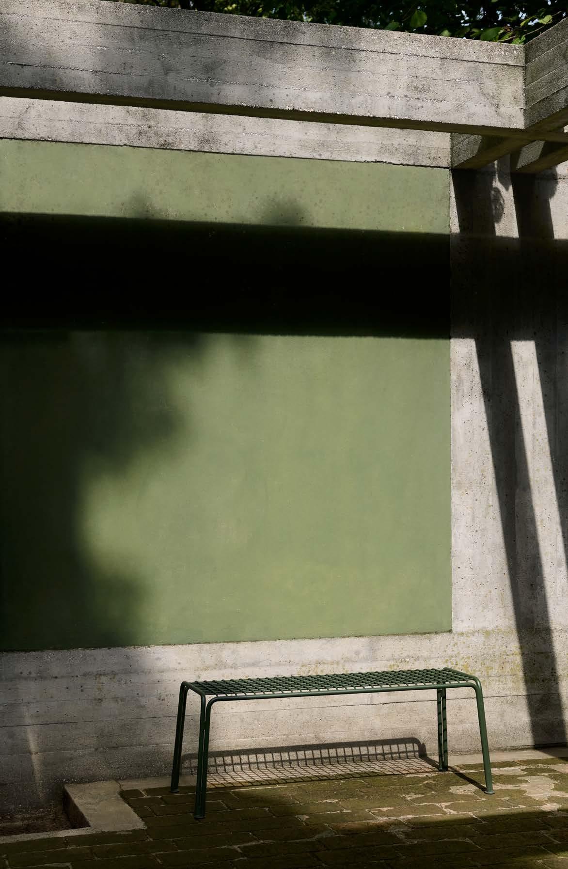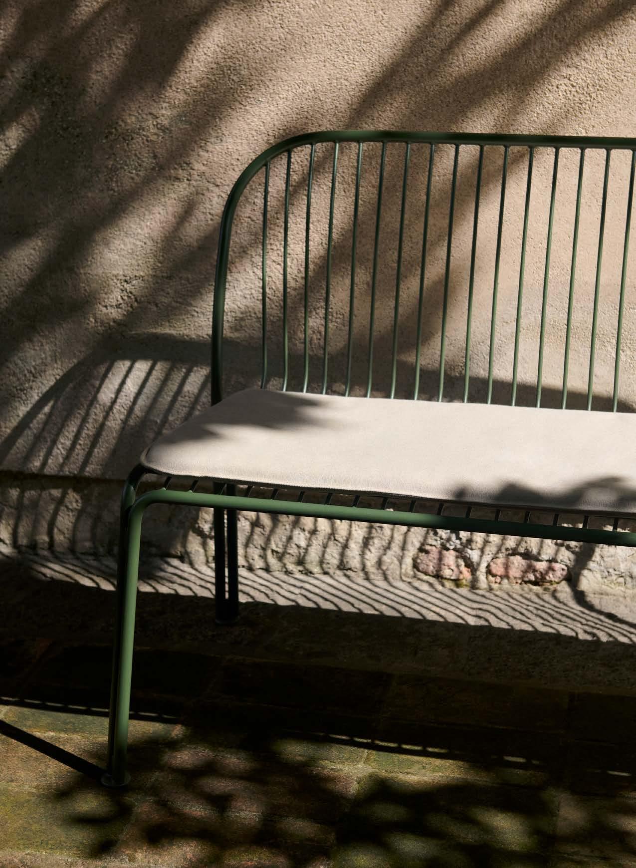 Thorvald Bench SC112 in Bronze Green | Como SC53 in Aluminium