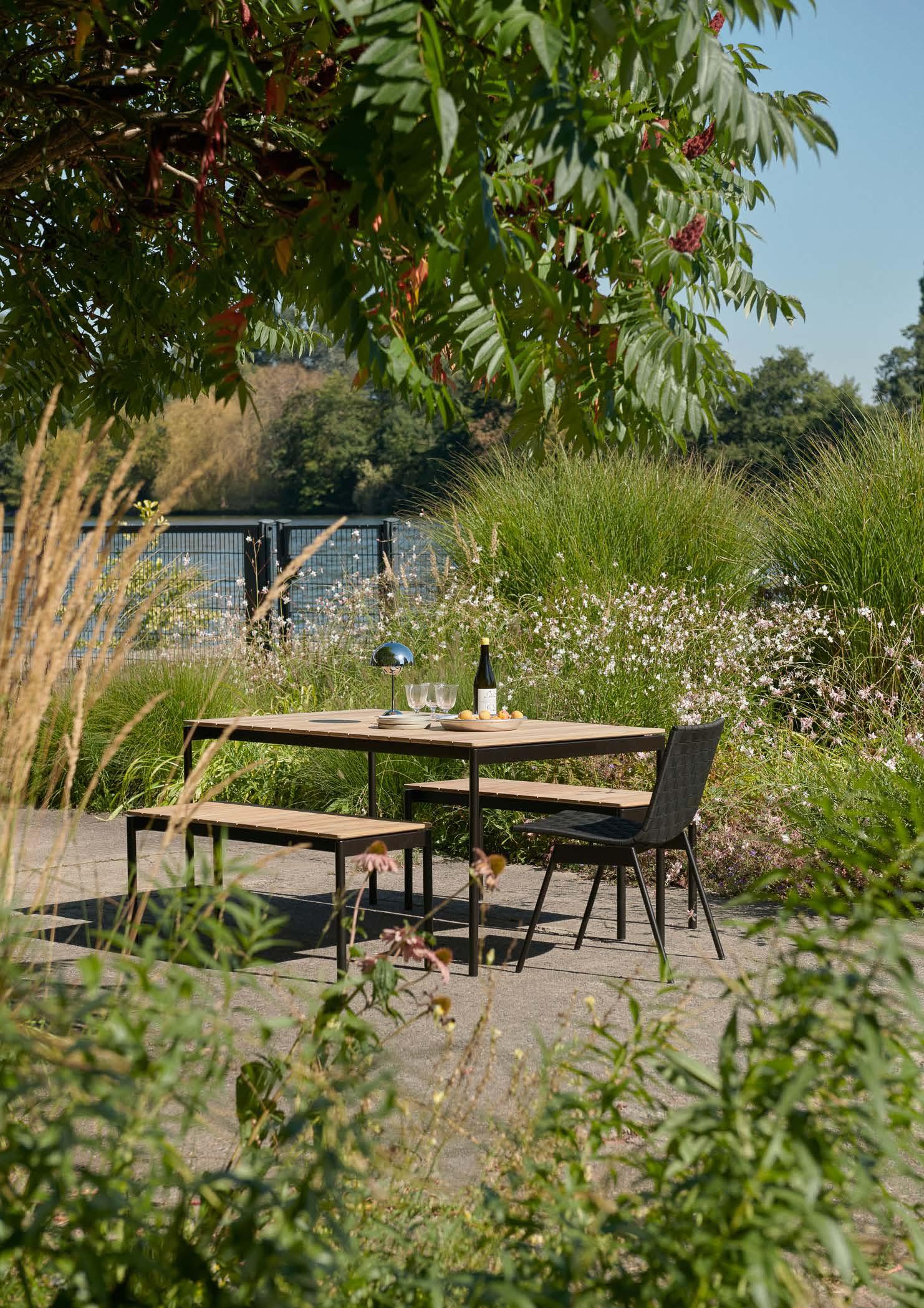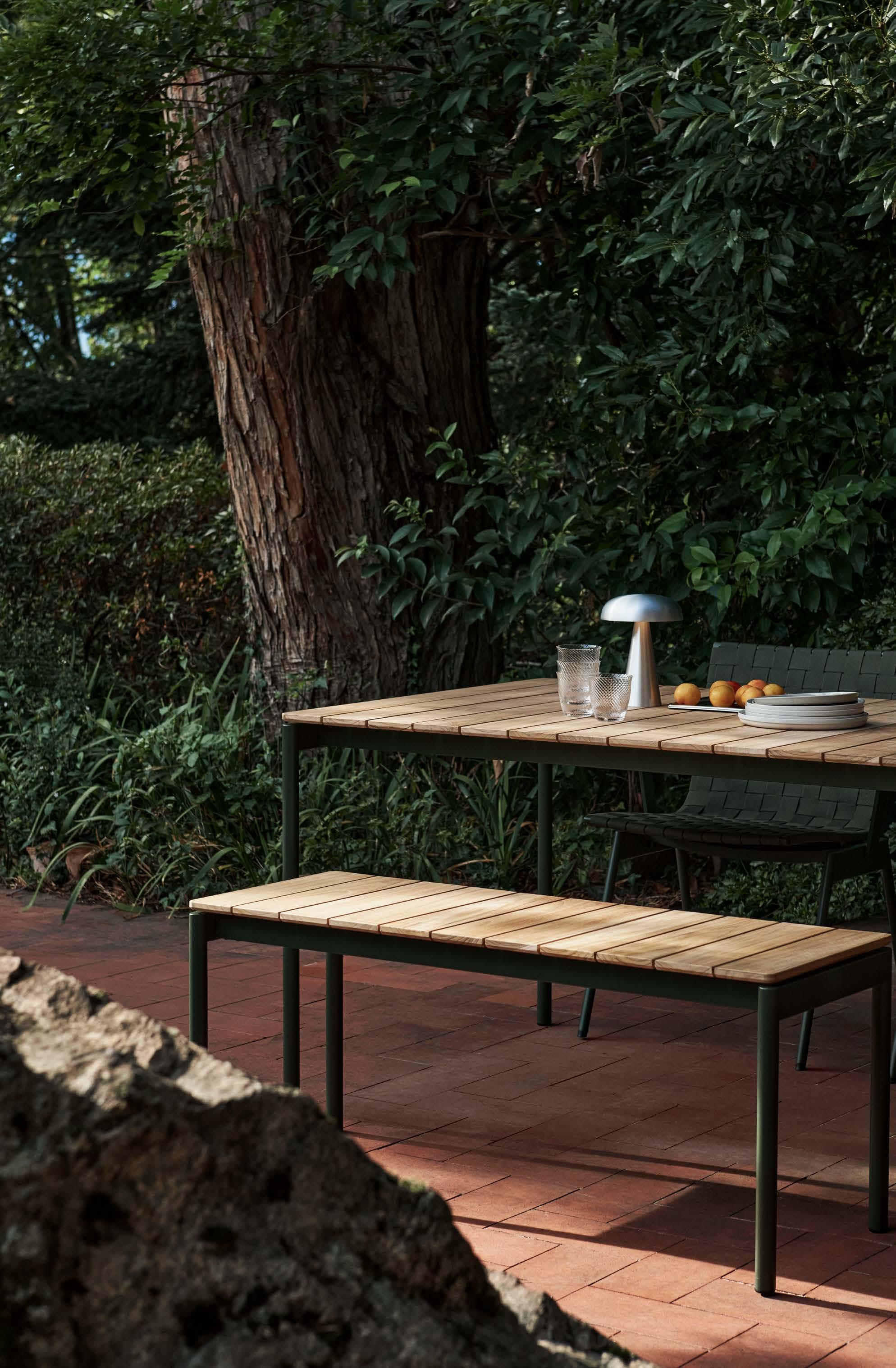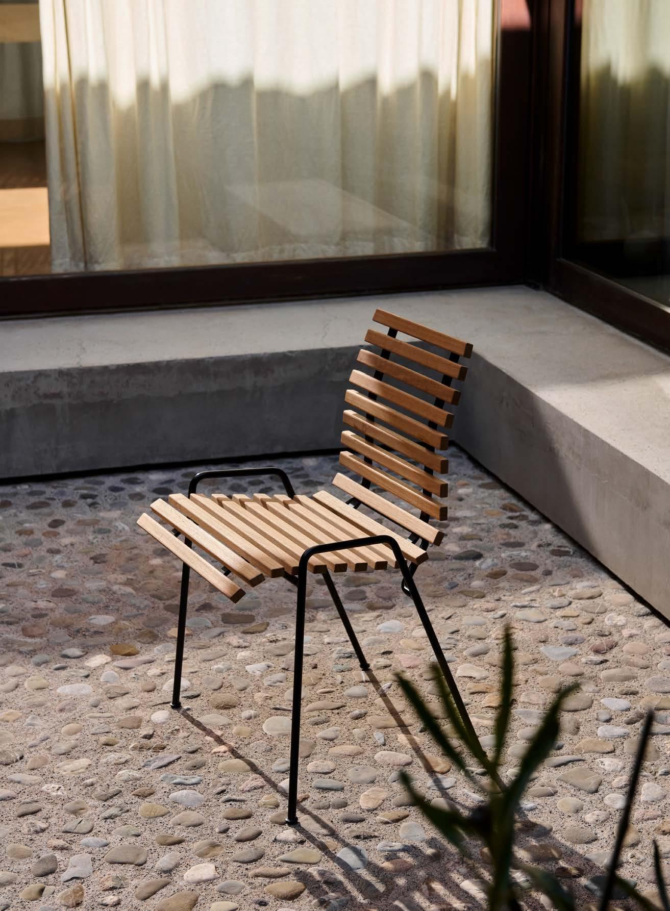 A key material used across our outdoor collections, steel is a highly recyclable metal that can be repurposed in future production cycles. Similarly, the recycled plastic used in the Rely Outdoor Chair is sourced from discarded white goods, transforming waste into a resource. To help prevent overconsumption and biodiversity loss while supporting the wellbeing of local communities, the teak we use is harvested from responsibly managed, FSC®-certified forests.