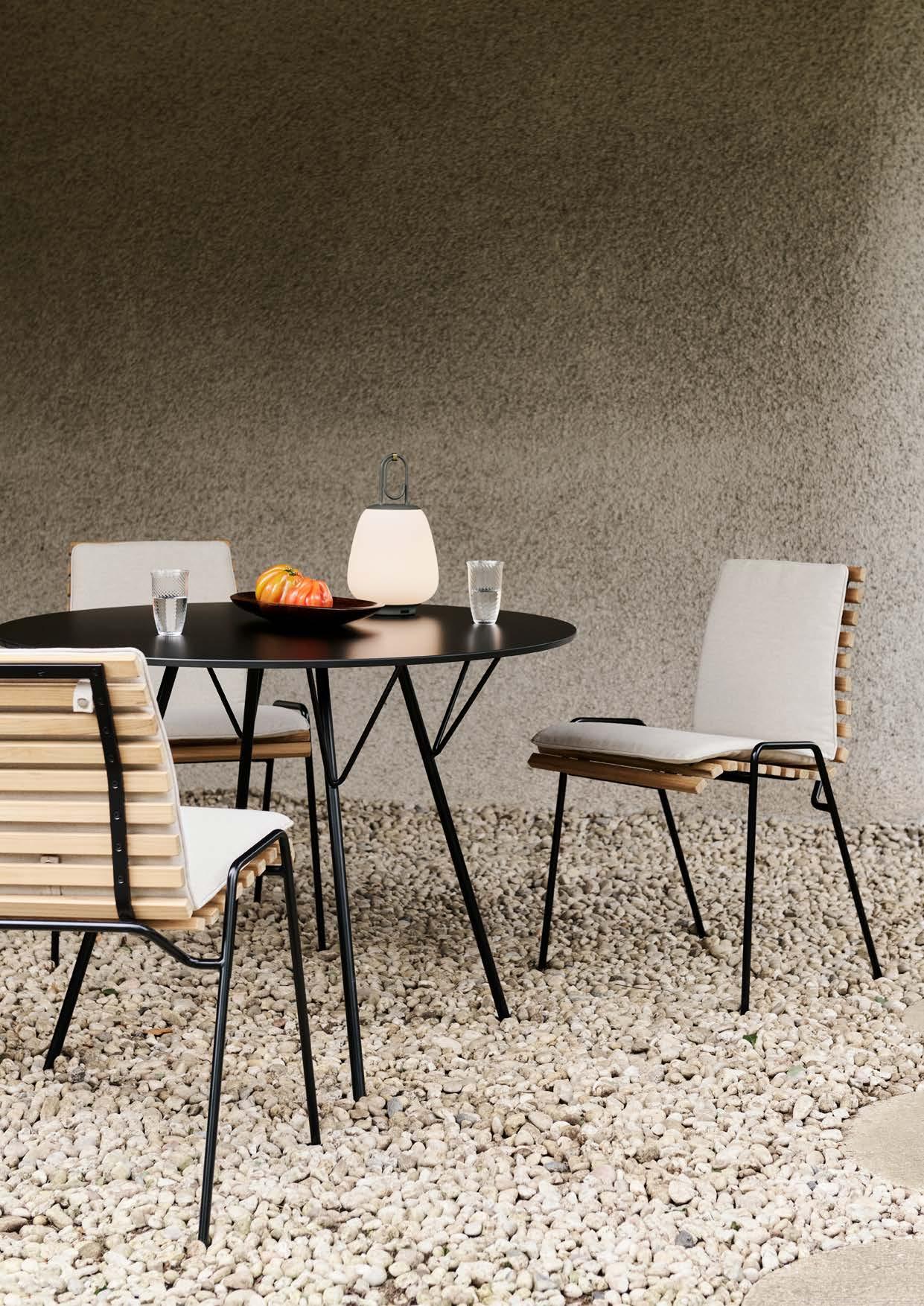 EU Ecolabel certified outdoor products include: the full Thorvald collection (DK/049/055, DK/049/054), Ville tables, benches, coffee table and stool, the RFH Terrace Chair (DK/049/042), the Rely Outdoor Chair (DK/049/019). See all certified products on our website.