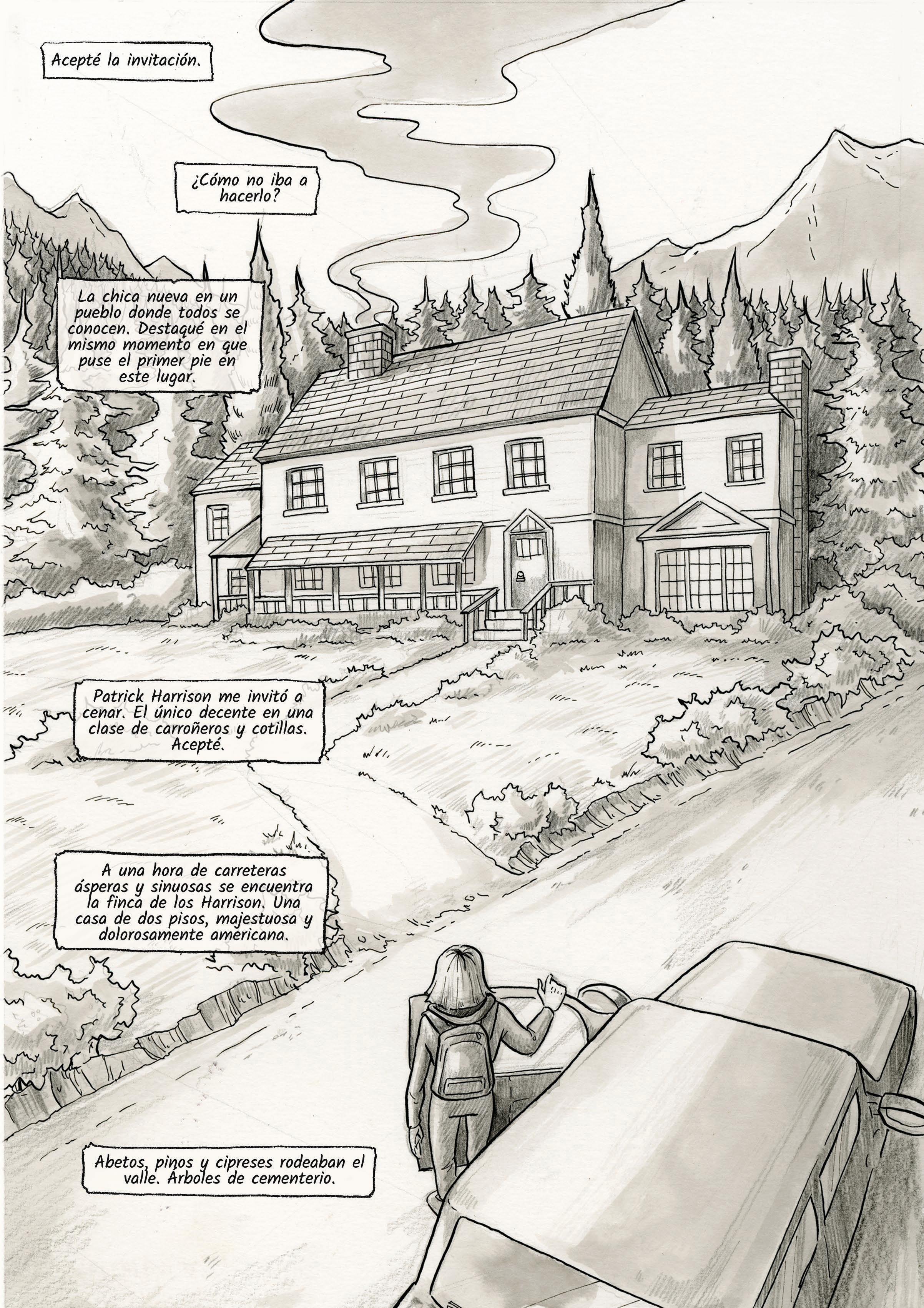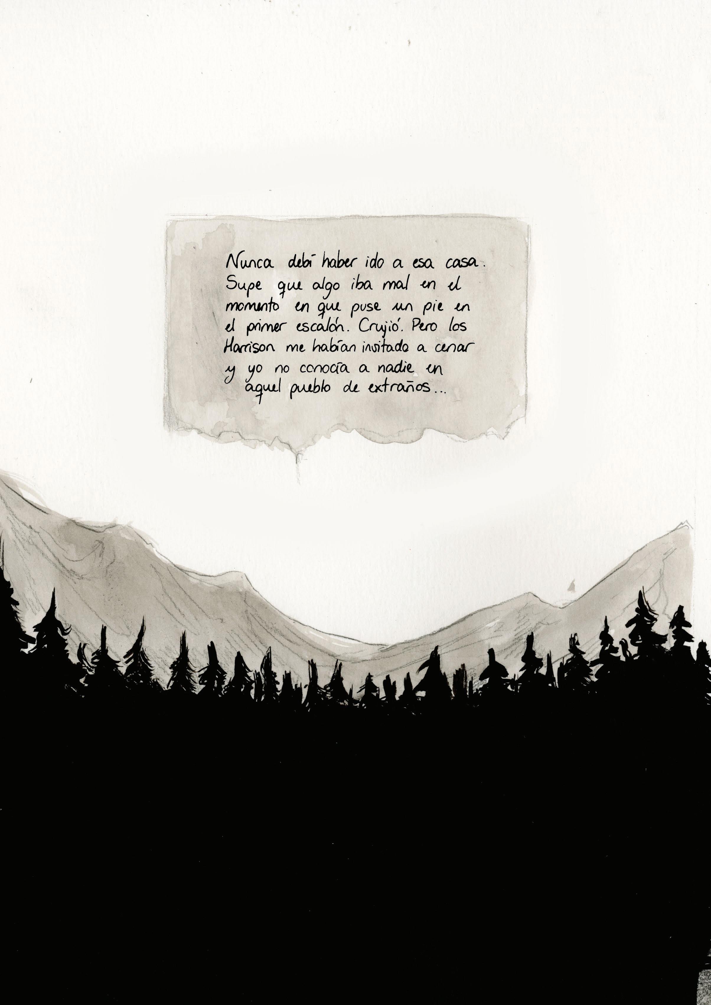 "Nunca debí haber ido a esa casa. Supe que algo iba mal en el momento en que puse un pie en el primer escalón. Crujió. Pero los Harrison me habían invitado a cenar y yo no conocía a nadie en aquel pueblo de extraños..."
