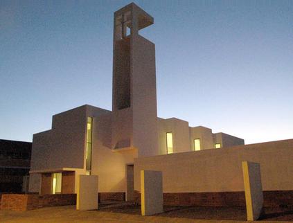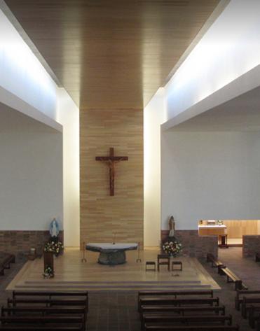 Lucarnas lineales a largo de la iglesia obligaron a ocupar vigas post-tensadas de mas de 30 m de largo , que lograron irradiar una luz cambiante que baja por la madera desde el cielo hacia el altar : exaltando una alegoría de la unión de lo divino con lo terrenal