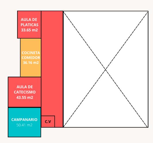 -Aula de usos múltiples (comedor comunitario, platicas, etc) -Coro