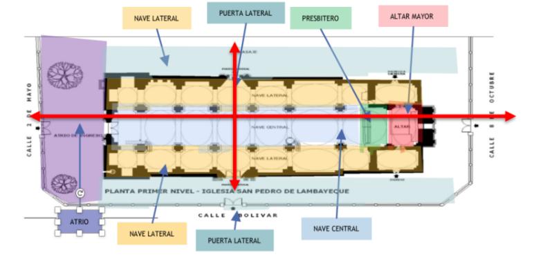 La iglesia San Pedro-Lambayeque presenta: - Nave Central con Bóveda tipo cañón - naves laterales con bóveda tipo Tabicada