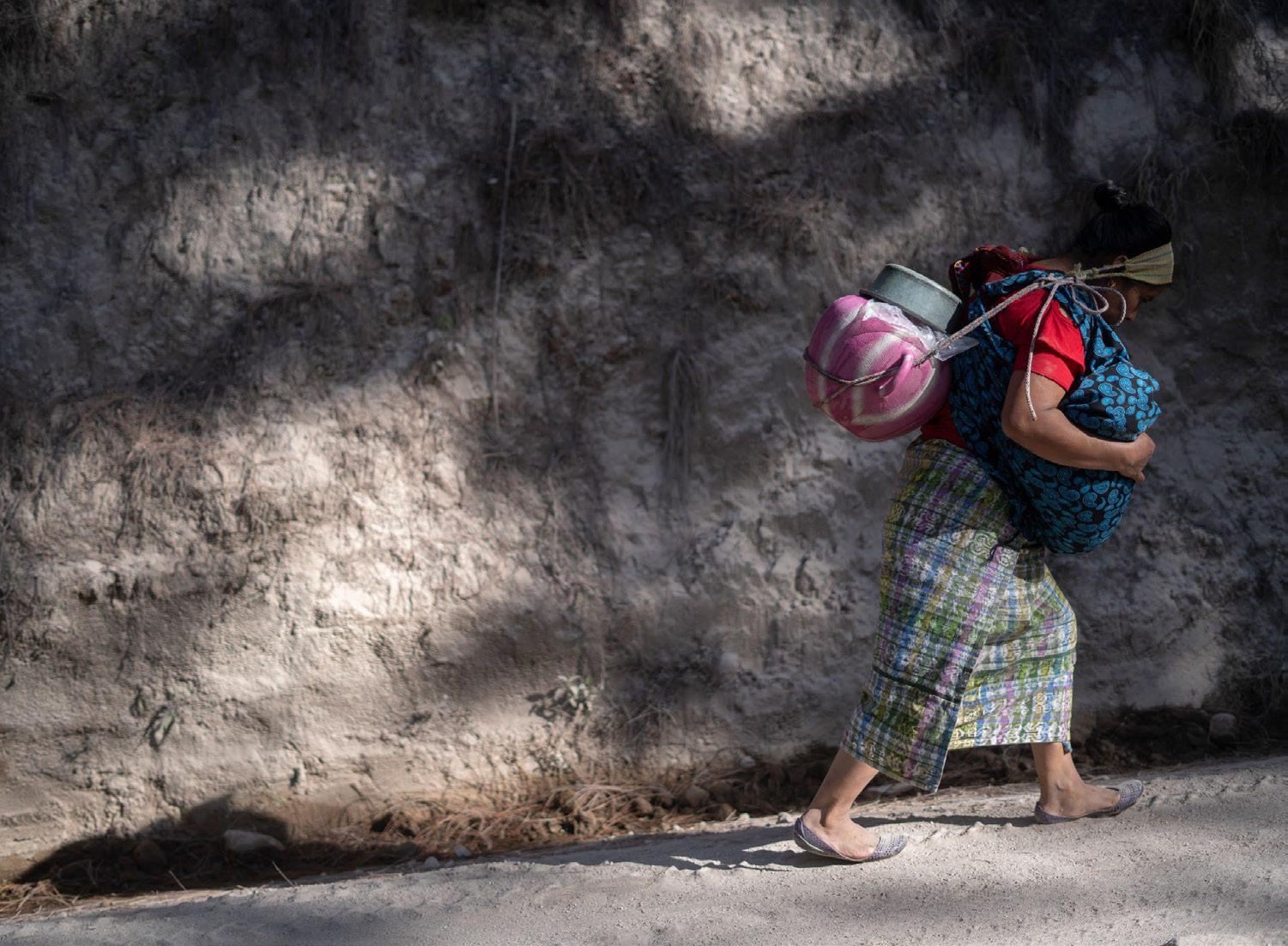 El informe recopila testimonios de 108 personas, la mayoría mujeres, de comunidades indígenas en los departamentos de Santa Rosa, Jalapa y Totonicapán. Entre ellas está María Osorio Osorio, una mujer maya de 41 años, quien vive en Santa María Chiquimula sin acceso a agua corriente en su hogar. Tres veces a la semana, recorre dos horas a pie para llenar cubetas en un pozo o barranco. “A veces solo tomamos un vaso de agua cada uno por día. No hay más agua que eso”, relató María.