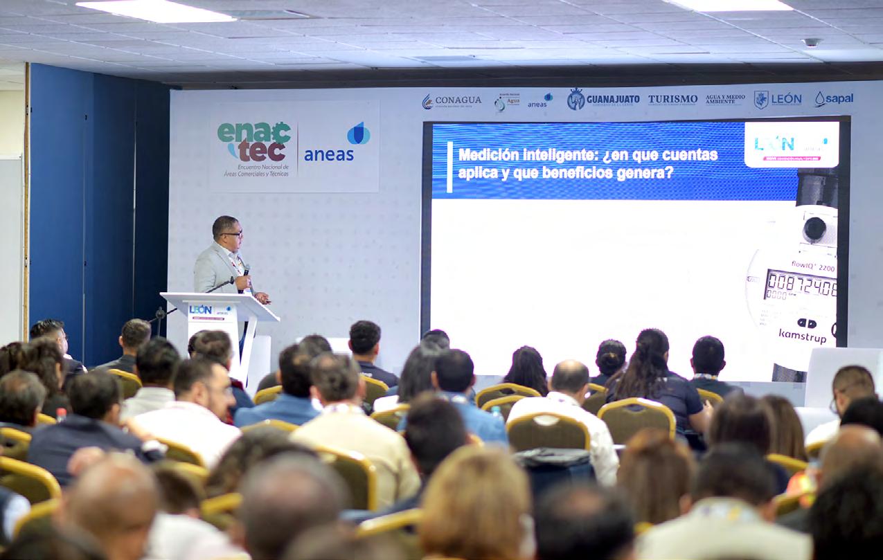 En el primer día de actividades de la Conven ción ANEAS 2025, se realizó el Encuentro Na cional de Áreas Comerciales y Técnicas 2025. En el marco de este congreso, David Sinaloa Bujanda, Gerente de Agua no Contabilizada en Hidromedidores, brindó la conferencia “Una forma más inteligente de recuperar el agua no contabilizada”.
